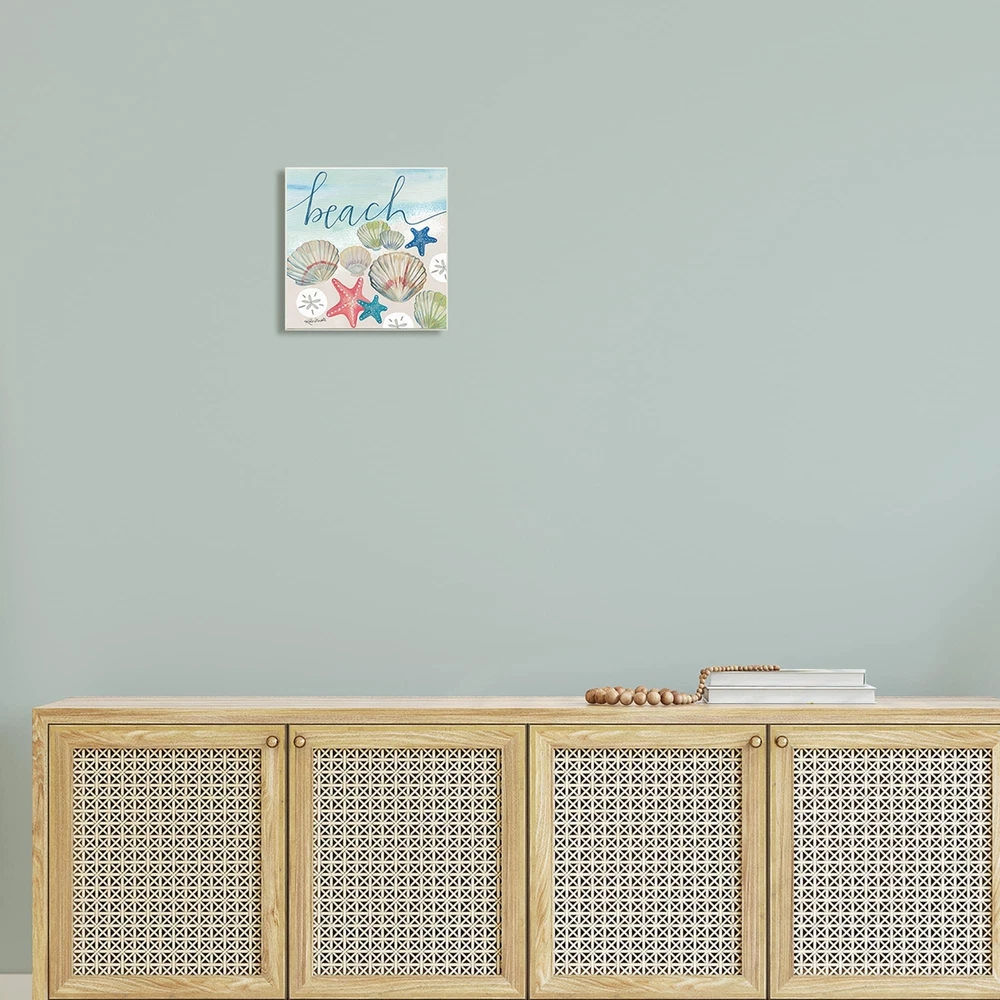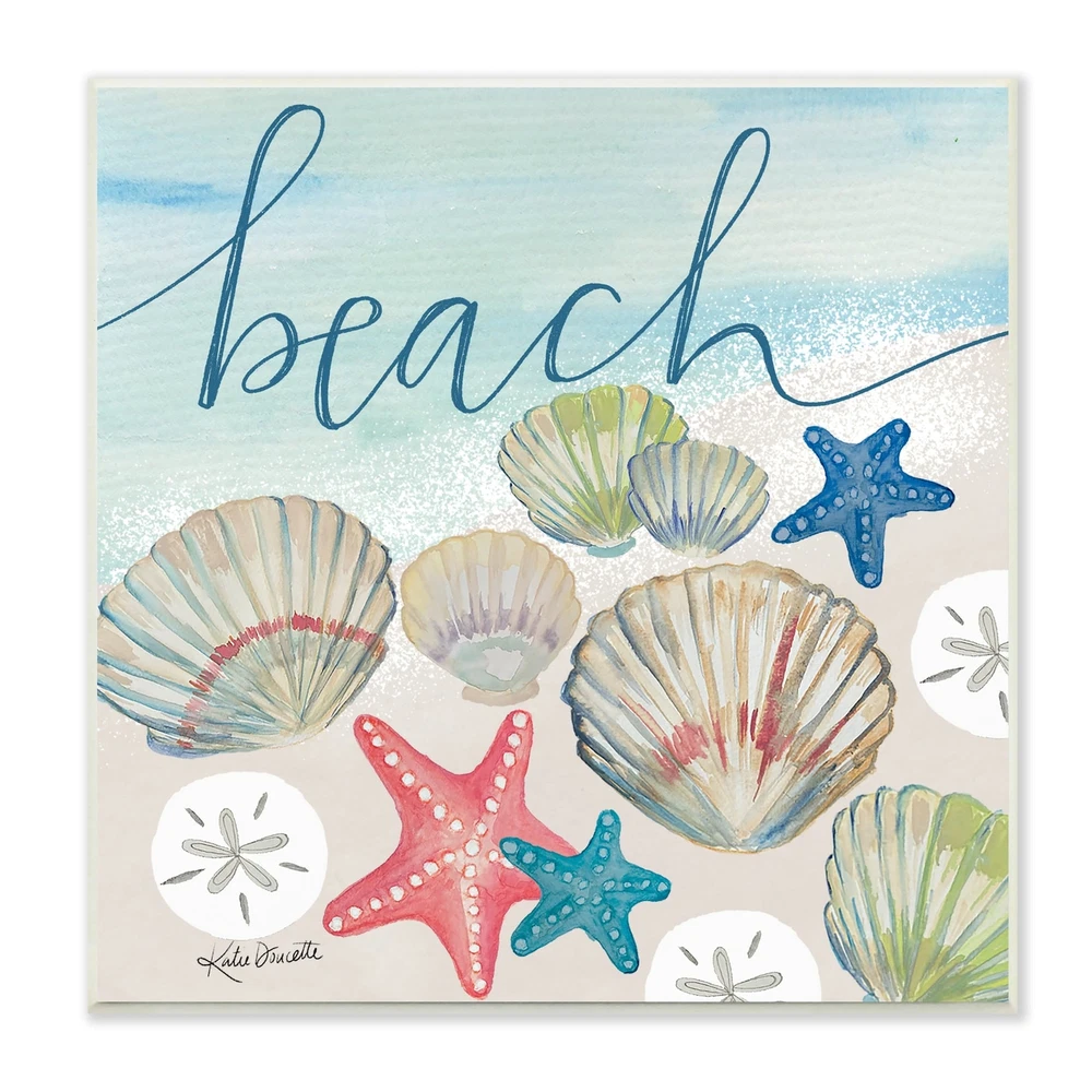 Proudly made in the USA, all of our wall plaques start off as high quality lithograph prints that are then mounted on durable 0.5 inch thick MDF wood. Each piece is hand finished and comes with a fresh layer of foil on the sides to give it a crisp clean look. It arrives ready to hang with no installation required, and comes with sturdy clear corners to keep it from damaging in transit.Features: Wall Art is Ready to Hang - No Installation or Hardware Needed. For Easy Set Up Lean or Layer Artwork on Shelf or Against Wall.All of our wall plaques start off as high quality lithograph prints that are then mounted on durable 0.5 inch thick MDF wood. Each piece is hand finished and comes with a fresh layer of foil on the sides to give it a crisp clean look. Made In USA.Artwork Relates To: Clam; Free Shipping Over $49.99* Details Stupell Beach Calligraphy Seashells Clams Starfish Ocean Foam Wood Wall Art - Product Description: Proudly made in the USA, all of our wall plaques start off as high quality lithograph prints that are then mounted on durable 0.5 inch thick MDF wood. Each piece is hand finished and comes with a fresh layer of foil on the sides to give it a crisp clean look. It arrives ready to hang with no installation required, and comes with sturdy clear corners to keep it from damaging in transit. Features: Wall Art is Ready to Hang - No Installation or Hardware Needed. For Easy Set Up Lean or Layer Artwork on Shelf or Against Wall. All of our wall plaques start off as high quality lithograph prints that are then mounted on durable 0.5 inch thick MDF wood. Each piece is hand finished and comes with a fresh layer of foil on the sides to give it a crisp clean look. Made In USA. Artwork Relates ToClam; Sea Life; Invertebrate; Seashell; Animal; Beach Design by Katie Doucette