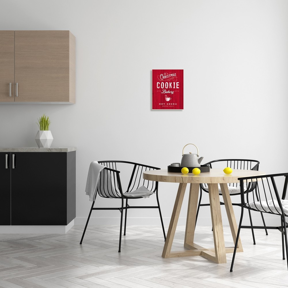 Proudly made in the USA, all of All of our wall plaques start off as high quality lithograph prints that are then mounted on durable 0.5 inch thick MDF wood. Each piece is hand finished and comes with a fresh layer of foil on the sides to give it a crisp clean look. It arrives ready to hang with no installation required, and comes with sturdy clear corners to keep it from damaging in transit.Features:Wall Art is Ready to Hang - No Installation or Hardware Needed. For Easy Set Up Lean or Layer Artwork on Shelf or Against Wall.All of our wall plaques start off as high quality lithograph prints that are then mounted on durable 0.5 inch thick MDF wood. Each piece is hand finished and comes with a fresh layer of foil on the sides to give it a crisp clean look. Made In USA.Artwork Ideal for any Free Shipping Over $49.99* Details Stupell Christmas Cookie Bakery Holiday Advertisement Festive Cocoa Wood Wall Product Description: Proudly made in the USA, all of All of our wall plaques start off as high quality lithograph prints that are then mounted on durable 0.5 inch thick MDF wood. Each piece is hand finished and comes with a fresh layer of foil on the sides to give it a crisp clean look. It arrives ready to hang with no installation required, and comes with sturdy clear corners to keep it from damaging in transit. Features: Wall Art is Ready to Hang - No Installation or Hardware Needed. For Easy Set Up Lean or Layer Artwork on Shelf or Against Wall. All of our wall plaques start off as high quality lithograph prints that are then mounted on durable 0.5 inch thick MDF wood. Each piece is hand finished and comes with a fresh layer of foil on the sides to give it a crisp clean look. Made In USA. Artwork Ideal for any Living Room, Den, Entryway, Bedroom, Office, Kitchen or Bathroom. Design by Nina Pierce