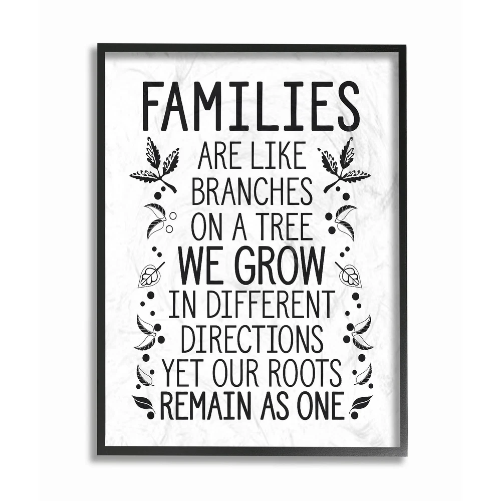 First came wood, then came canvas, and now we introduce our 'Framed Giclee Textured Wall Art.' 100% Made in USA as always, we start with a giclee lithograph mounted on wood, and finish it with a texturized brush stroke finish. We didn't stop there though as we fit it within a 1.5 inch thick ebony wood grain frame to add depth and diminsion. Ready to hang. Stupell has been providing quality wall art and decorative accessories for over forty years. Offering wall art and home décor in a variety of themes, mediums and sizes. Stupell's products range from canvas wall art, wood wall art, and framed giclée art. No matter the style, our modern, contemporary, traditional, or baby wall art and home decor is crafted with the utmost consideration and care.Features:Wall Art is Ready to Hang - No Free Shipping Over $49.99* Details Stupell Families Are Like Branches Framed Giclee Texture Art Product Description: First came wood, then came canvas, and now we introduce our 'Framed Giclee Textured Wall Art.' 100% Made in USA as always, we start with a giclee lithograph mounted on wood, and finish it with a texturized brush stroke finish. We didn't stop there though as we fit it within a 1.5 inch thick ebony wood grain frame to add depth and diminsion. Ready to hang. Stupell has been providing quality wall art and decorative accessories for over forty years. Offering wall art and home décor in a variety of themes, mediums and sizes. Stupell's products range from canvas wall art, wood wall art, and framed giclée art. No matter the style, our modern, contemporary, traditional, or baby wall art and home decor is crafted with the utmost consideration and care. Features: Wall Art is Ready to Hang - No Installation or Hardware Needed. For Easy Set Up Lean or Layer Artwork on Shelf or Against Wall. Our giclée prints are carefully mounted on a durable MDF backing, and then perfectly finished in a 1.5 inch thick woodgrain frame. Frame colors include black, gray farmhouse and white. Made In USA. Artwork Ideal for any Living Room, Den, Entryway, Bedroom, Office, Kitchen or Bathroom. Design by Lettered and Lined