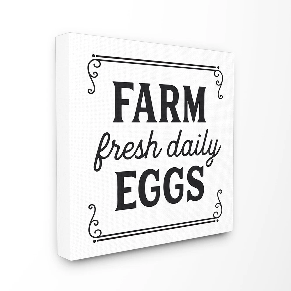 Our stretched canvas is created with only the highest standards. We print with high quality inks and canvas, and then hand cut and stretch it over a 1.5 inch thick wooden frame. The art comes ready to hang with no installation required.Period: ModernismOrientation: VerticalSubject: Typography and SymbolsStyle: TraditionalSeason or Holiday: All Seasons Free Shipping Over $49.99* Details Stupell Farm Fresh Eggs Daily Vintage Typography Stretched Canvas Wall Art Product Description: Our stretched canvas is created with only the highest standards. We print with high quality inks and canvas, and then hand cut and stretch it over a 1.5 inch thick wooden frame. The art comes ready to hang with no installation required. PeriodModernism OrientationVertical SubjectTypography and Symbols StyleTraditional Season or HolidayAll Seasons