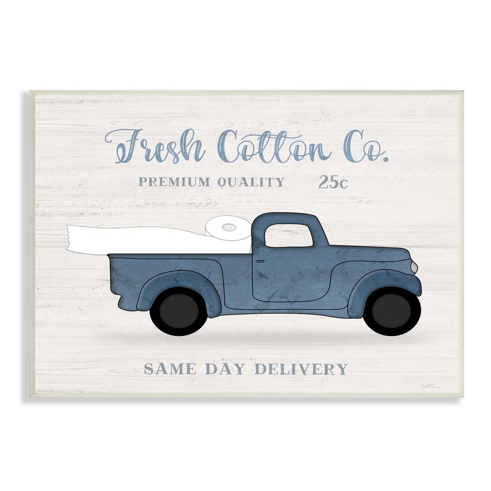 Proudly made in the USA, all of All of our wall plaques start off as high quality lithograph prints that are then mounted on durable 0.5 inch thick MDF wood. Each piece is hand finished and comes with a fresh layer of foil on the sides to give it a crisp clean look. It arrives ready to hang with no installation required, and comes with sturdy clear corners to keep it from damaging in transit.Features:Wall Art is Ready to Hang - No Installation or Hardware Needed. For Easy Set Up Lean or Layer Artwork on Shelf or Against Wall.All of our wall plaques start off as high quality lithograph prints that are then mounted on durable 0.5 inch thick MDF wood. Each piece is hand finished and comes with a fresh layer of foil on the sides to give it a crisp clean look. Made In USA.Artwork Ideal for any Free Shipping Over $49.99* Details Stupell Fresh Cotton Co. Vintage Blue Truck Toilet Paper Wood Wall Art - White Product Description: Proudly made in the USA, all of All of our wall plaques start off as high quality lithograph prints that are then mounted on durable 0.5 inch thick MDF wood. Each piece is hand finished and comes with a fresh layer of foil on the sides to give it a crisp clean look. It arrives ready to hang with no installation required, and comes with sturdy clear corners to keep it from damaging in transit. Features: Wall Art is Ready to Hang - No Installation or Hardware Needed. For Easy Set Up Lean or Layer Artwork on Shelf or Against Wall. All of our wall plaques start off as high quality lithograph prints that are then mounted on durable 0.5 inch thick MDF wood. Each piece is hand finished and comes with a fresh layer of foil on the sides to give it a crisp clean look. Made In USA. Artwork Ideal for any Living Room, Den, Entryway, Bedroom, Office, Kitchen or Bathroom. Design by Natalie Carpentieri
