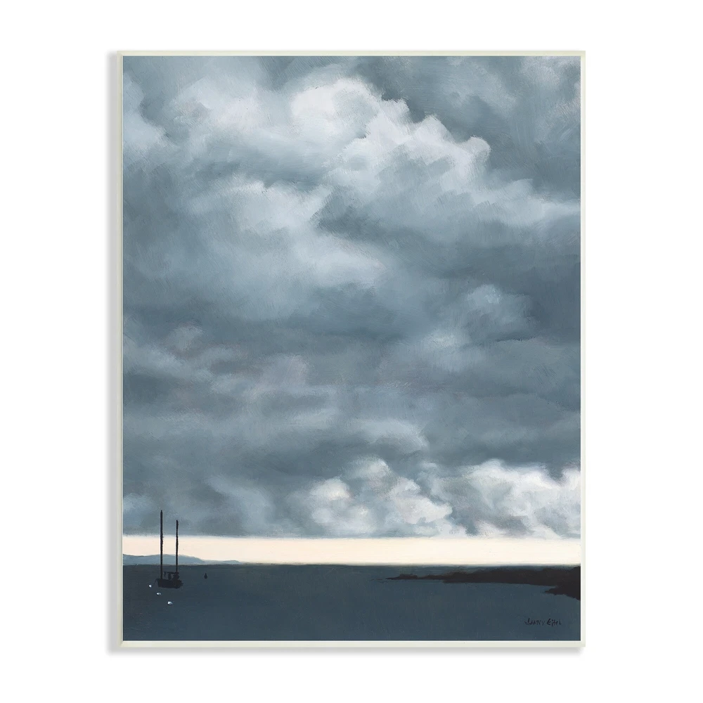 Proudly made in the USA, all of our wall plaques start off as high quality lithograph prints that are then mounted on durable 0.5 inch thick MDF wood. Each piece is hand finished and comes with a fresh layer of foil on the sides to give it a crisp clean look. It arrives ready to hang with no installation required, and comes with sturdy clear corners to keep it from damaging in transit.Features: Wall Art is Ready to Hang - No Installation or Hardware Needed. For Easy Set Up Lean or Layer Artwork on Shelf or Against Wall.All of our wall plaques start off as high quality lithograph prints that are then mounted on durable 0.5 inch thick MDF wood. Each piece is hand finished and comes with a fresh layer of foil on the sides to give it a crisp clean look. Made In USA.Artwork Relates To: Nature; Free Shipping Over $49.99* Details Stupell Heavy Overcast Clouds Looming Ocean Water Boat Wood Wall Art - Grey Product Description: Proudly made in the USA, all of our wall plaques start off as high quality lithograph prints that are then mounted on durable 0.5 inch thick MDF wood. Each piece is hand finished and comes with a fresh layer of foil on the sides to give it a crisp clean look. It arrives ready to hang with no installation required, and comes with sturdy clear corners to keep it from damaging in transit. Features: Wall Art is Ready to Hang - No Installation or Hardware Needed. For Easy Set Up Lean or Layer Artwork on Shelf or Against Wall. All of our wall plaques start off as high quality lithograph prints that are then mounted on durable 0.5 inch thick MDF wood. Each piece is hand finished and comes with a fresh layer of foil on the sides to give it a crisp clean look. Made In USA. Artwork Relates ToNature; Weather; Outdoors; Cumulus; Cloud; Sky; Boat; Transportation; Design by Jen Eitel