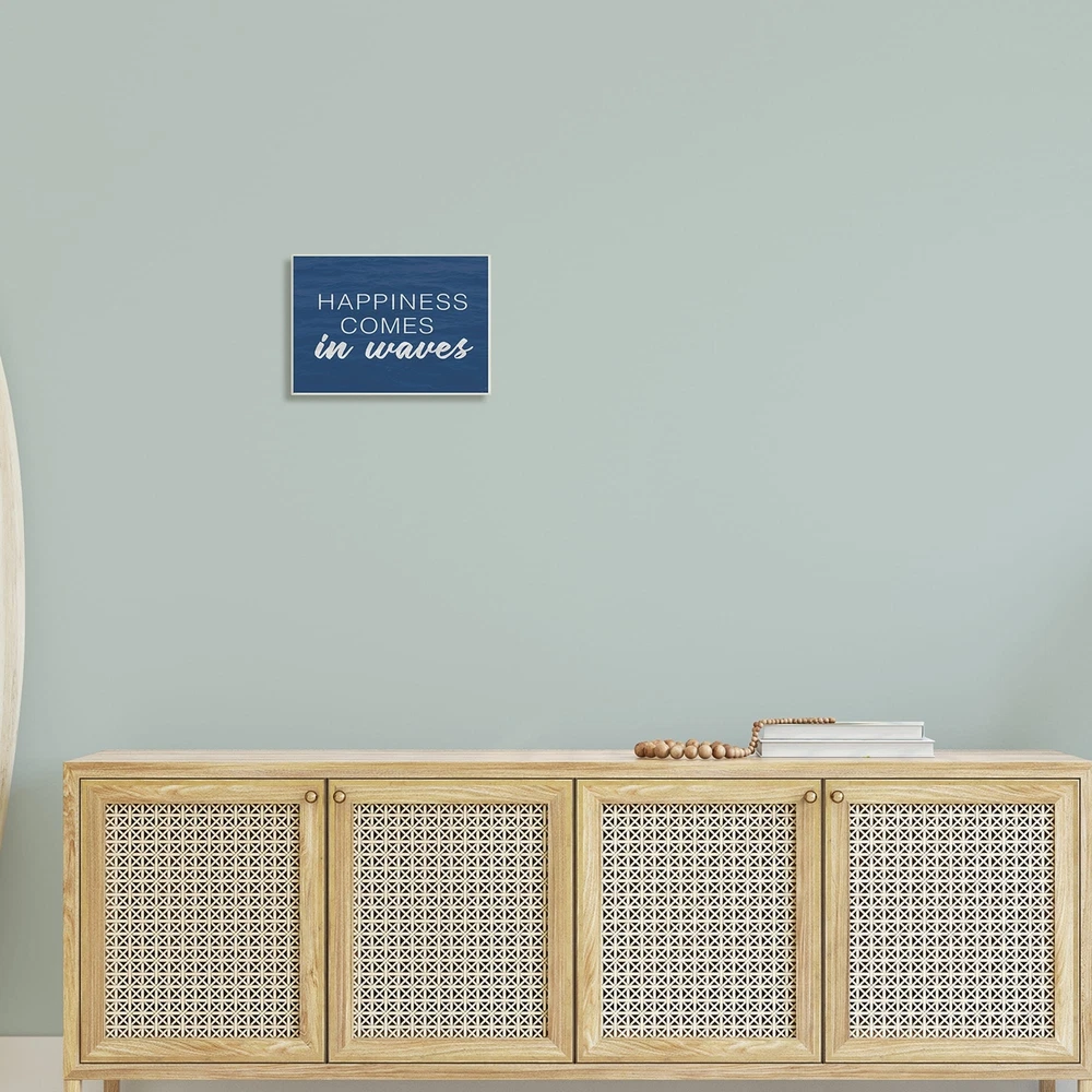 Proudly made in the USA, all of All of our wall plaques start off as high quality lithograph prints that are then mounted on durable 0.5 inch thick MDF wood. Each piece is hand finished and comes with a fresh layer of foil on the sides to give it a crisp clean look. It arrives ready to hang with no installation required, and comes with sturdy clear corners to keep it from damaging in transit.Features:Wall Art is Ready to Hang - No Installation or Hardware Needed. For Easy Set Up Lean or Layer Artwork on Shelf or Against Wall.All of our wall plaques start off as high quality lithograph prints that are then mounted on durable 0.5 inch thick MDF wood. Each piece is hand finished and comes with a fresh layer of foil on the sides to give it a crisp clean look. Made In USA.Artwork Ideal for any Free Shipping Over $49.99* Details Stupell Inspirational Happiness Comes in Waves Blue Coastal Waves Wood Wall Art Product Description: Proudly made in the USA, all of All of our wall plaques start off as high quality lithograph prints that are then mounted on durable 0.5 inch thick MDF wood. Each piece is hand finished and comes with a fresh layer of foil on the sides to give it a crisp clean look. It arrives ready to hang with no installation required, and comes with sturdy clear corners to keep it from damaging in transit. Features: Wall Art is Ready to Hang - No Installation or Hardware Needed. For Easy Set Up Lean or Layer Artwork on Shelf or Against Wall. All of our wall plaques start off as high quality lithograph prints that are then mounted on durable 0.5 inch thick MDF wood. Each piece is hand finished and comes with a fresh layer of foil on the sides to give it a crisp clean look. Made In USA. Artwork Ideal for any Living Room, Den, Entryway, Bedroom, Office, Kitchen or Bathroom. Design by Lux + Me Designs