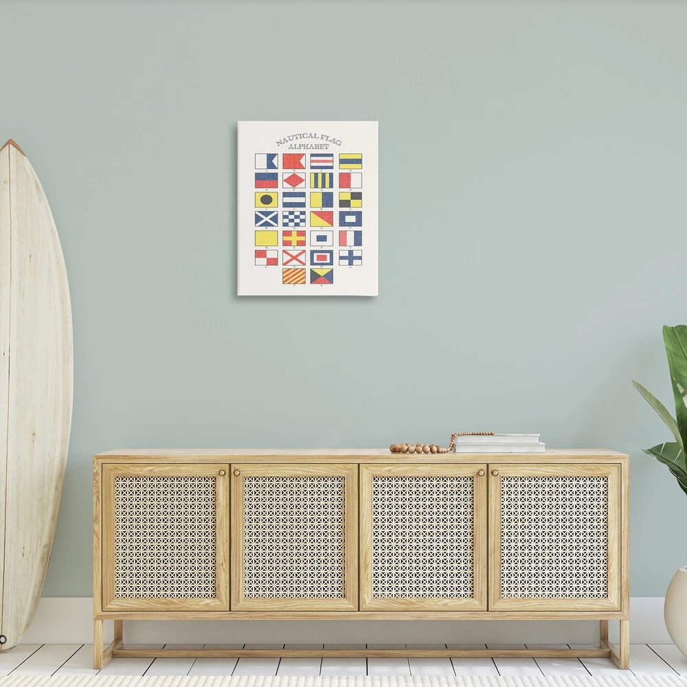 Stupell Industries has been providing quality wall art and decorative accessories for over forty years. Offering wall art and home decor in a variety of themes, mediums and sizes. Stupell's products range from canvas wall art, wood wall art, and framed giclee art. No matter the style, our modern, contemporary, traditional, or baby wall art and home decor is crafted with the utmost consideration and care. All of our products are brought to life at our facilities in Johnston, RI. The canvas is Hand Stretched on a 1.5 Inch Thick Wood Frame - Ready to Hang. Bring the shoreline a little closer to home with this charming canvas art. Design By Daphne Polselli. Free Shipping Over $49.99* Details Stupell Nautical Flag Alphabet Stretched Canvas Wall Art Product Description: Stupell Industries has been providing quality wall art and decorative accessories for over forty years. Offering wall art and home decor in a variety of themes, mediums and sizes. Stupell's products range from canvas wall art, wood wall art, and framed giclee art. No matter the style, our modern, contemporary, traditional, or baby wall art and home decor is crafted with the utmost consideration and care. All of our products are brought to life at our facilities in Johnston, RI. The canvas is Hand Stretched on a 1.5 Inch Thick Wood Frame - Ready to Hang. Bring the shoreline a little closer to home with this charming canvas art. Design By Daphne Polselli.