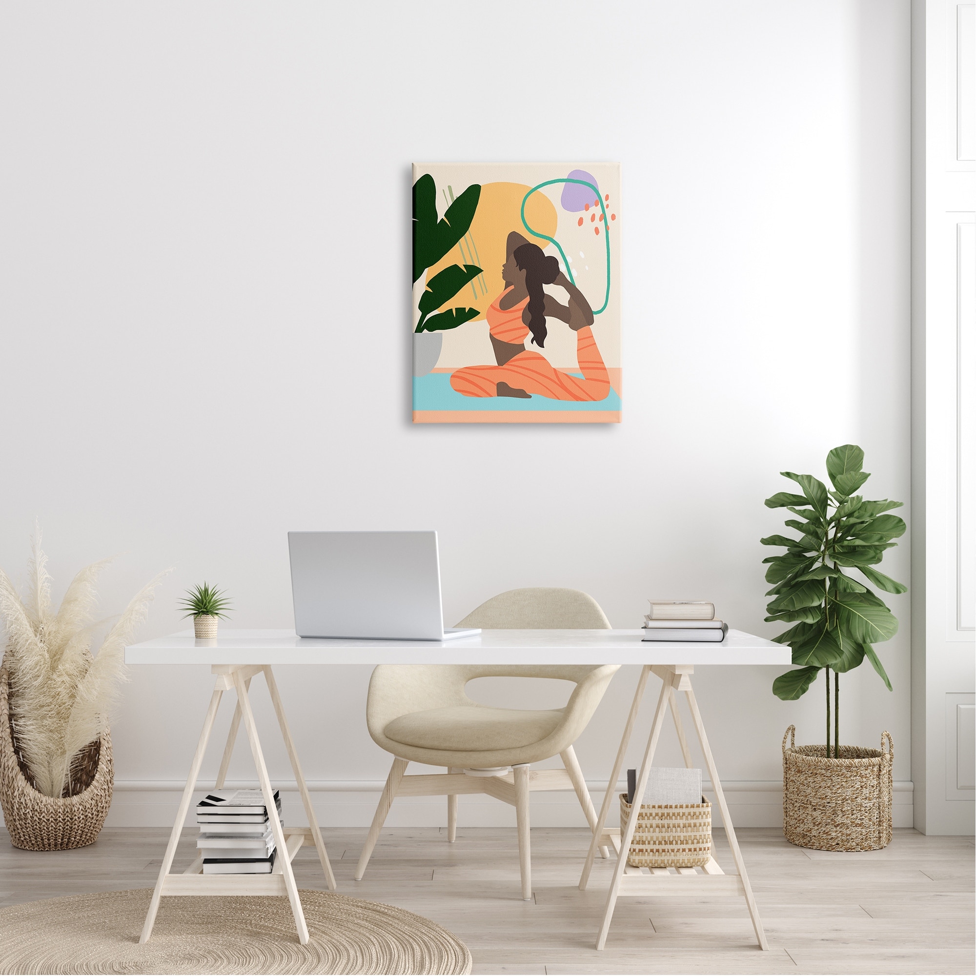 Proudly made in the USA, Our stretched canvas is created with the highest standards. We use only the highest quality inks and canvas on our in house Mimaki printers, and then hand cut and stretch each piece over a 1.5 inch thick wooden frame for hanging. The art comes ready to hang with no installation required.Features:Wall Art is Ready to Hang - No Installation or Hardware Needed. For Easy Set Up Lean or Layer Artwork on Shelf or Against Wall.Our stretched canvas is created with the highest standards. We use only the highest quality inks and canvas on our in house Mimaki printers, and then hand cut and stretch each piece over a 1.5 inch thick wooden frame for hanging. Made In USA.Artwork Ideal for any Living Room, Den, Entryway, Bedroom, Office, Kitchen or Bathroom.Design by Annie Warren Free Shipping Over $49.99* Details Stupell Person Working Out Yoga Plant Modern Design Canvas Wall Art Product Description: Proudly made in the USA, Our stretched canvas is created with the highest standards. We use only the highest quality inks and canvas on our in house Mimaki printers, and then hand cut and stretch each piece over a 1.5 inch thick wooden frame for hanging. The art comes ready to hang with no installation required. Features: Wall Art is Ready to Hang - No Installation or Hardware Needed. For Easy Set Up Lean or Layer Artwork on Shelf or Against Wall. Our stretched canvas is created with the highest standards. We use only the highest quality inks and canvas on our in house Mimaki printers, and then hand cut and stretch each piece over a 1.5 inch thick wooden frame for hanging. Made In USA. Artwork Ideal for any Living Room, Den, Entryway, Bedroom, Office, Kitchen or Bathroom. Design by Annie Warren