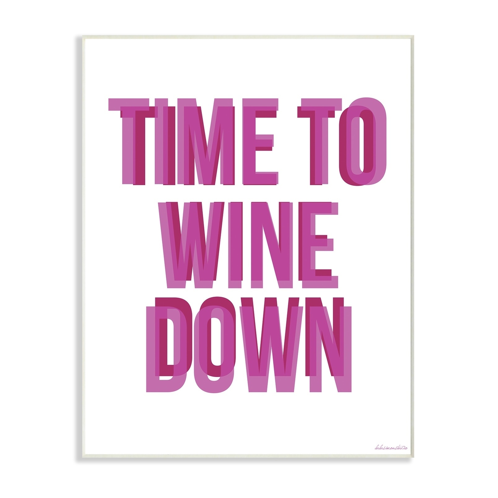 Proudly made in the USA, all of our wall plaques start off as high quality lithograph prints that are then mounted on durable MDF wood. Each piece is hand finished and comes with a fresh layer of foil on the sides to give it a crisp clean look. It arrives ready to hang with no installation required, and comes with sturdy clear corners to keep it from damaging in transit. Stupell Industries has been providing quality wall art and decorative accessories for over forty years. Offering wall art and home décor in a variety of themes, mediums and sizes. Stupell's products range from canvas wall art, wood wall art, and framed giclée art. No matter the style, our modern, contemporary, traditional, or baby wall art and home decor is crafted with the utmost consideration and care. Free Shipping Over $49.99* Details Stupell Time To WINE Down Wall plaque Art design by House of Lulu Product Description: Proudly made in the USA, all of our wall plaques start off as high quality lithograph prints that are then mounted on durable MDF wood. Each piece is hand finished and comes with a fresh layer of foil on the sides to give it a crisp clean look. It arrives ready to hang with no installation required, and comes with sturdy clear corners to keep it from damaging in transit. Stupell Industries has been providing quality wall art and decorative accessories for over forty years. Offering wall art and home décor in a variety of themes, mediums and sizes. Stupell's products range from canvas wall art, wood wall art, and framed giclée art. No matter the style, our modern, contemporary, traditional, or baby wall art and home decor is crafted with the utmost consideration and care.