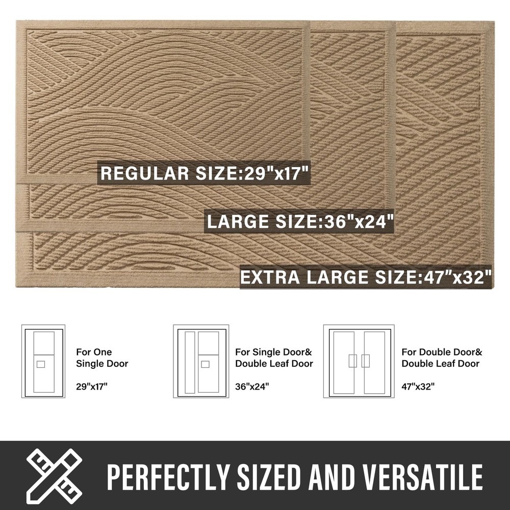 Welcome Mats Outdoor Indoor Capture Dirt and Moisture: Doormat super absorbent, outdoor welcome mat effectively capture mud and moisture. Deep groove design and rubber border helps capture water and prevents excess water from spilling onto the ground. Indoor door mat surface fibers scrape dust and debris from your shoes, boots, paws. Let the dirt stay out Non Slip Rubber Backing: Door mat outdoor entrance textured rubber backing with moisture-proof , wear-resistant, safe, non-slip to protect your floor. Quick dry outdoor indoor door mats for entryway, tile, marble, deck, hardwood, concrete. Please keep the floor dry before placing the entry rug to prevent falling Sturdy, Stain and Fade Resistant: Front door rug high density polyester surface, made of waterproof recycled fabric, super tough and heavy duty. Outdoor door mat features heat resistant, water resistant, weather resistant, color will not fade. Welcome mat indoor can be used in all weather and seasons Low Profile & Versatile: Our floor mat low-profile flow pattern design and 0.3 inches high can easily open the door, without jamming or curling. Door mat indoor entrance, front door, back door, shoe mats for entryway indoor, patio, laundry, porch, kitchen, garage, deck, pet entry. You can also cut it to your liking and place it high traffic areas Easy Clean: Front door mat indoor can be vacuumed or garden hose rinsed. Easy to sweep and shake off dirt, gravel, grass, sand, mud and snow from outdoor doormat. If you have any questions about welcome mat for front door, I will help you answer them as soon as possible. Give you a satisfactory solution