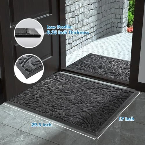 Return Policy Fast Delivery Trusted seller Sturdy Door Mat, Heavy Duty Front Welcome Mats for Home Entrance Outdoor Indoor, Doormat for Outside Back Patio Floor Entry Porch Garage Office, Weather Resistant Easy Clean, 29.5 x 17, Grey Product Description 【Capture Dirt and Moisture】: door mat adopts deep groove design, forming a detention dam extending in all directions, helping to capture dirt, dust, gravel, mud, sand, grass or other messy debris and prevent them from entering Indoor; The surface of floor mat beautifully woven polyester fabric absorbs moisture, and the sturdy oblique rubber edge will not accumulate water in rainy and snowy days, keeping your home dry and clean 【Non Slip Rubber Backing】: heavy duty outdoor mat, 0.20 inch ultra-thin design, can glide under most doors without jamming or curling. The indoor mat uses a high-quality non-slip rubber backing to help prevent you from slipping when entering or going out, keeping you safe. At the same time, the rubber backing can prevent water and mud from penetrating the floor, keeping door rug in place and not sliding or wear the floor and effectively protect your indoor floor 【Easy to Clean】: doormat outdoor entrance, Just use a vacuum cleaner, or sweep with a broom, or tap the backing and shake the doormat. For more in-depth cleaning, use a washing machine or garden hose to rinse the floor mat, then hang it in a ventilated place to air dry it or use a dryer 【Rugged and Sturdy 】: The surface of this outdoor door mat is made of high-quality polyester, unique Hot-melt Planting Production Process, which is designed to be sturdy , strong and flexible. The doormat in outside can withstand a variety of weather and seasonal changes, whether it is sunny, rainy or snowy 【Wide Use】: outdoor welcome mat are stylish and practical, suitable for indoor use to keep the floors of homes, living spaces, lobbies and offices clean, or outdoor use in front doors, sidewalks, terraces, garages, barns, driveways and many others busy areas; Heavy and sturdy materials, soft and flexible; Simple and stylish design complements any decoration. Shipping Returns Payment Shipping Shipping is FREE to all addresses other than APO/PO boxes in the lower 48 states. All our stock ships from US-based warehouses. Shipped via USPS or UPS (depending on location and package weight) Unless stated otherwise, all orders will ship within 24-72 hours of your payment being processed. Check our feedback to see the great reviews of FAST shipping we offer. Returns Seller does not accept returns Payment We currently accept payment via eBay managed payments only. Once payment is cleared, we will dispatch your shipment within 1-3 business days. Please refer to the "Shipping" tab for more information regarding shipping speed to your destination.