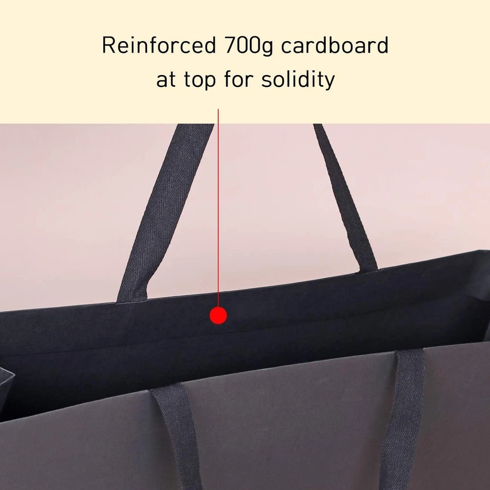 Sturdy Giant Gift Bags - Thick Paper, Cotton Handles ‹ › ‹ › ‹ › ‹ › ‹ › ‹ › ‹ › ‹ › Sturdy Giant Gift Bags Thickness & Elegance Perfected Size: 21.7x6.1x15.7" (WxDxH) | Quantity: 6pcs Extra Large Bags Features: Crafted from -thick paper of over 250g, ensuring durability and sturdiness. Cotton handles that provide a comfortable grip and allow for easy carrying. Exceptional quality at an affordable price, offering thoughtful gifting options. Handled with bonding methods for a neat and luxurious finish. Perfectly sized for all your gifting needs, from large presents to a collection of smaller items. Beautifully designed, offering a sophisticated look reminiscent of upscale boutiques. Benefits: Thick and sturdy, designed to hold heavier items securely. High quality you can trust; these bags won't tear or crumble. Elegant presentation elevates your gift-giving, making every occasion special. Convenient pack of six ensures you're always prepared for celebrations. Environmentally friendly options that reflect taste and care for our planet. Why Choose Our Sturdy Giant Gift Bags? When it comes to gift-giving, the presentation is just as important as the gift itself. Our Sturdy Giant Gift Bags, crafted from thick, high-quality paper and adorned with soft cotton handles, offer an unmatched combination of durability and sophistication. Whether you're preparing for birthdays, holidays, or special celebrations, these extra-large bags are designed to accommodate all your gifting needs, ensuring your presents shine even brighter. Choose our gift bags to make your gifting experiences unforgettable—because your loved ones deserve the very best. Order your set today! Shipping Free & Fast Shipping - We offer free shipping to most of the USA with a normal delivery time of 3-10 business days. However, due to various situations, additional delivery time (up to 3 weeks) may be required for some items. Alternative Carriers - We may use alternative carriers (e.g. USPS, FedEx, UPS, etc.) to ensure your package arrives safely and on time. Due to the use of multiple carriers, we are unable to provide a tracking number automatically. Handling Time - Orders are processed and shipped within 1-5 business days of receiving cleared payment. Shipping Restrictions - Shipping to Alaska, Hawaii, Puerto Rico, Guam, and other US territories may incur shipping charges or delivery restrictions. Please contact us before ordering, or your order can be refunded/cancelled. State Restrictions - There may be restrictions based on your state of purchase. For example, certain items may not be shipped to California due to state regulations. Contact for Tracking Updates - If you require tracking updates or have any concerns about the delivery of your order, please feel free to contact us, and we will be happy to assist you. Return 30-Day Hassle-Free Returns - We want you to be completely satisfied with your purchase. If you are not, you can return the item within 30 days of receiving it for a full refund or exchange. Easy Return Process - To start a return, simply contact us and we will provide you with a prepaid return shipping label and detailed instructions. Restocking Fee - There are no restocking fees for returns. However, the buyer is responsible for return shipping costs if the return is not due to a seller's error. Refund Processing Time - Refunds will be processed within 5 business days of receiving the returned item in its condition. Payment We accept all major credit cards, PayPal, and Apple Pay for your convenience. Your payment information is secure and encrypted to ensure a safe and seamless transaction. Please complete your payment within 3 days of purchase to avoid any delays in shipping. Feedback Your feedback is extremely important to us. We strive to provide the best products and customer service possible. If you are satisfied with your purchase, please take a moment to leave us a positive review. If you have any concerns or issues with your order, please contact us before leaving negative feedback. We are committed to resolving any problems and ensuring your satisfaction. Contact Us If you have any questions or concerns, please feel free to out to our customer support team. You can contact us through the eBay messaging system. We are available Monday to Friday, 9:00 am to 5:00 pm EST, and we will do our best to respond to your inquiry within 24 hours. Buy it now and enjoy a pleasant shopping experience! Unit Quantity: 6 Material: Paper,Cotton Type: Gift Bags Occasion: Birthday Size: Extra Large Color: Black Pattern: Solid Origin: California Recipient: Multipurpose Style: Contemporary