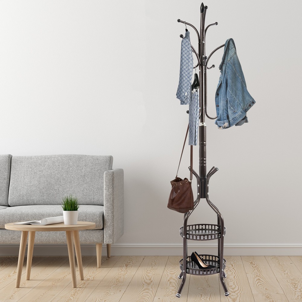 Package Included 1* Coat Hanger Stand 1* Chinese Installation Diagram Other Needed Accessories Description This coat rack combines practicality and artistic beauty. The selection of high-quality materials and fine craftsmanship have built a solid structure and smooth, rounded hanging rod for the product to easily carry your daily coats, hats, and bags. In addition, it is uniquely designed with two shelves underneath, so that home slippers, shoes, umbrellas, shopping bags, and other miscellaneous items can be placed in an orderly manner so that your home space is well organized. Coat Rack Stand Hat Bag Stand Coat Hanger Stand Sturdy High Space Utilization Description This coat rack combines practicality and artistic beauty. The selection of high-quality materials and fine craftsmanship have built a solid structure and smooth, rounded hanging rod for the product to easily carry your daily coats, hats, and bags. In addition, it is uniquely designed with two shelves underneath, so that home slippers, shoes, umbrellas, shopping bags, and other miscellaneous items can be placed in an orderly manner so that your home space is well organized. Key Features High-quality Material: The high-quality iron and the spraying paint process provide the product with corrosion resistance and rust resistance , keeping it practical and glossy for long-term use. Strong Structure: The thickened tubes and sturdy screw connection give the product a strong load-bearing capacity to hold your coats, hats, and other clothes that weighs about 33.07 lbs. Simple Installation: With a simple structure and complete accessories, you can easily and quickly install the product without costing much time and effort. Stylish Appearance: The bronze color and smooth lines give the product an elegant appearance, allowing it to easily blend into different styles of home decor. High Space Utilization: The product takes up only a small amount of floor space, which allows it to be placed anywhere in the room to hang your clothes. Multiple hooks, storage baskets, and a multi-tier design allow it to hang a variety of hats, coats, and short-sleeved clothing and place your umbrellas, shopping bags, and other miscellaneous items, greatly improving the utilization of space. Easy to Clean: The simple structure and smooth surface allow you to easily wipe it clean with a damp cloth (not included). Ideal Gift: The powerful function and stylish appearance make it an ideal housewarming gift for your friends, families, and colleagues. Buy with Confidence: We stand behind all our guests and look forward to assisting you with your purchase. It is our pleasure to answer your confusion and questions. The end of the story between us is not "we sell and you buy". Details Practical Feet: They provide excellent stability while preventing the product from sliding and scratching the floor. Moreover, it can be adjusted to adapt to uneven ground. Smooth Edges: They can protect your hands from getting scratched during installation and daily use. Application It can be used in hallways, bedrooms, living rooms, bathrooms, entryways, foyers, study rooms, children's rooms, laundry rooms, offices, clothing stores, apartments, hotels, dormitories, etc. It can be used to hang coats, scarves, hats, school bags, handbags, purses, suits, garments, and so on. Specifications Color: Bronze Material: Iron Process: Spraying Mount Type: Free Standing Assembly Required: Yes Max. Total Load-bearing Capacity: About 15kg/33.07lbs Product Overall Size: 31*31*185cm/12.2*12.2*72.8in Package Size: 81.3*48.3*6.5cm/32*19.02*2.56in Gross Weight: 4.5kg/9.92lbs Net Weight: 4kg/8.82lbs Package Included 1* Coat Hanger Stand 1* Chinese Installation Diagram Other Needed Accessories Notes 1. Please check the size carefully before ordering. 2. Please allow the slight color difference caused by the shooting light and 1-3cm error due to manual measurement, and make sure you do not mind before you order. Payment Delivery details Terms of sales About us Contact us Payment We accept ebay payment 。 Fees such as import duties, taxes are not included in the item price or shipping costs. These charges are the buyer's responsibility. Delivery details Shipping: 2-9 working days to: USA Terms of sales We maintain high standards of excellence and strive for hundred percent customer satisfaction. Feedback is very important to us. We hope that you contact us immediately before you give neutral or negative feedback, so that we can address your concerns. It is impossible to address issues if we do not know about them! About us Your satis faction is our ultimate goal. We work hard to earn your trust and future business. Our certified technicians have tested each item before shipping. The unit comes with 1 year limited warranty on all manufacturing defects. a) If you receive a defective item, you may return it or ask for a discount. Please contact us within 14 days after you receive the package. b) What you returned must be intact and in its original packaging as re? u. Customer is responsible for shipping costs of the returned item. c) We will cover the cost of shipping back t with the shipping rate indicated in the registration page. We will send you a new unit or refund the full payment you paid. Thank you. Contact us Business Hour Business Hour: Monday To Friday: 8:30 AM to 5:00 PM (Beijing China time) Due to time zones, our reply to your questions may not be immediately. But within above working time, we will reply your email within 24 hours. If it's non-workdays, please kindly be patient and wait till Monday. Please contact us with ebay message. Please feel free to contact us if you have any questions. Monday To Friday: 8:30 AM to 5:00 PM (Beijing China time) Due to time zones, our reply to your questions may not be immediately. But within above working time, we will reply your email within 24 hours. If it's non-workdays, please kindly be patient and wait till Monday. Please contact us with ebay message. Ple