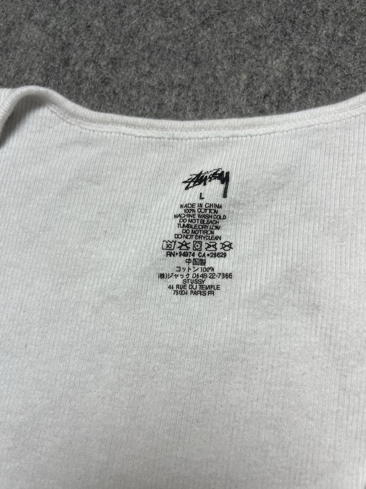 Size Type:RegularFeatures:All SeasonsBrand:StussyType:T-ShirtSleeve Length:SleevelessCountry/Region of Manufacture:MexicoSize:LMaterial:CottonVintage:NoColor:WhiteFit:RegularPattern:SolidTheme:Designer, Hip HopDepartment:Men