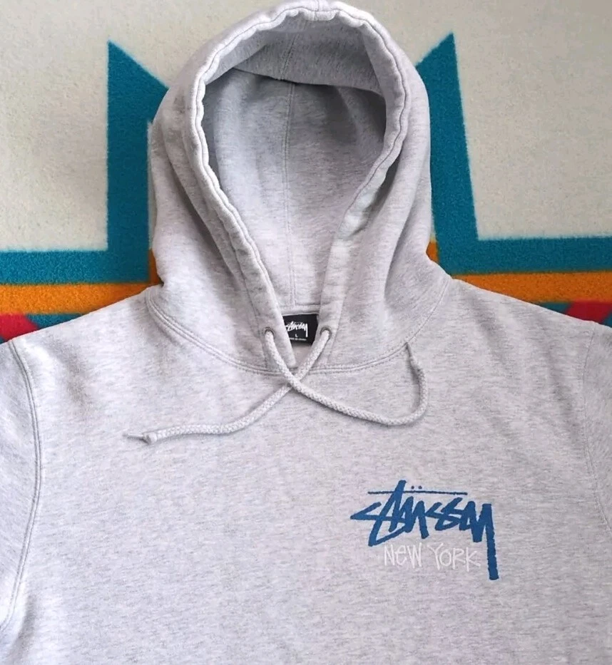 Theme:Hip Hop, Designer, City, Streetwear, StussyStyle:PulloverBrand:StussyDepartment:MenSize:LSize Type:RegularProduct Line:Stussy New York HoodieColor:GrayVintage:YesType:Hoodie