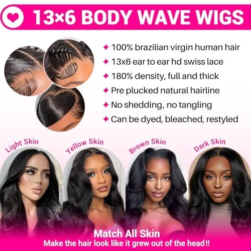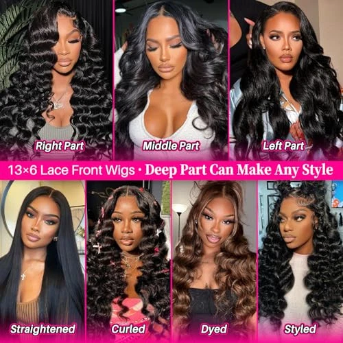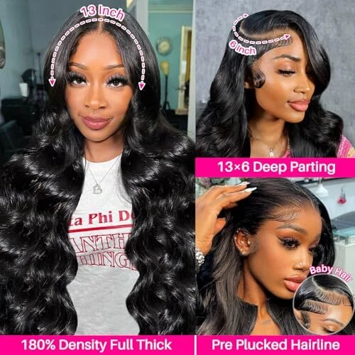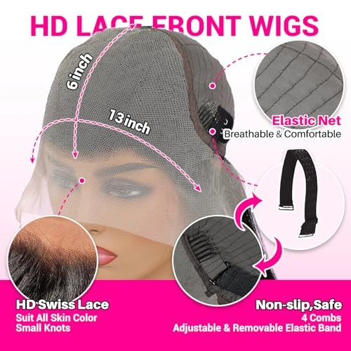Human Hair Lace Front Wigs Material: 100% unprocessed 10A grade Brazilian virgin human hair wigs for black women, cut from healthy young female head directly, healthy and bouncy, soft and smooth, full and thick, natural luster and color. 30 inch Lace Front Wig Human Hair Quality: 180% density 13x6 body wave lace front wigs human hair pre plucked with natural hairline. True to length & weight, no smell, no split ends, no shedding, tangle free. Body wave human hair wig can be straightened, curled, bleached, dyed, permed and styled as like your own hair. Frontal Wigs Human Hair 13x6 Detail: 6 inch parting space supports middle part, side part and free part. Ear to ear 13x6 large lace size can make high ponytail & bun, enough baby hair around, looks really natural and attractive when take it on. HD transparent Swiss lace melts most skin well, lightly bleached knots, breathable & durable. HD Lace Frontal Wig 13x6 Cap Size: Beginner friendly, 22.5 inch medium cap size, 5D dome full elastic breathable cap, 4 combs, 2 adjustable straps and one removable elastic band that ensure everyone can enjoy the perfect fit without having to worry about the cap being too tight or uncomfortable. Perfect for Any Occasion: 13x6 HD lace front wigs human hair suit for your daily, party, birthday, graduation, travel, wedding, etc. It also is a gift for your family and friends. Blossom your beauty and self-confidence. Any questions about our human hair wigs, we will solve it for you in time.
