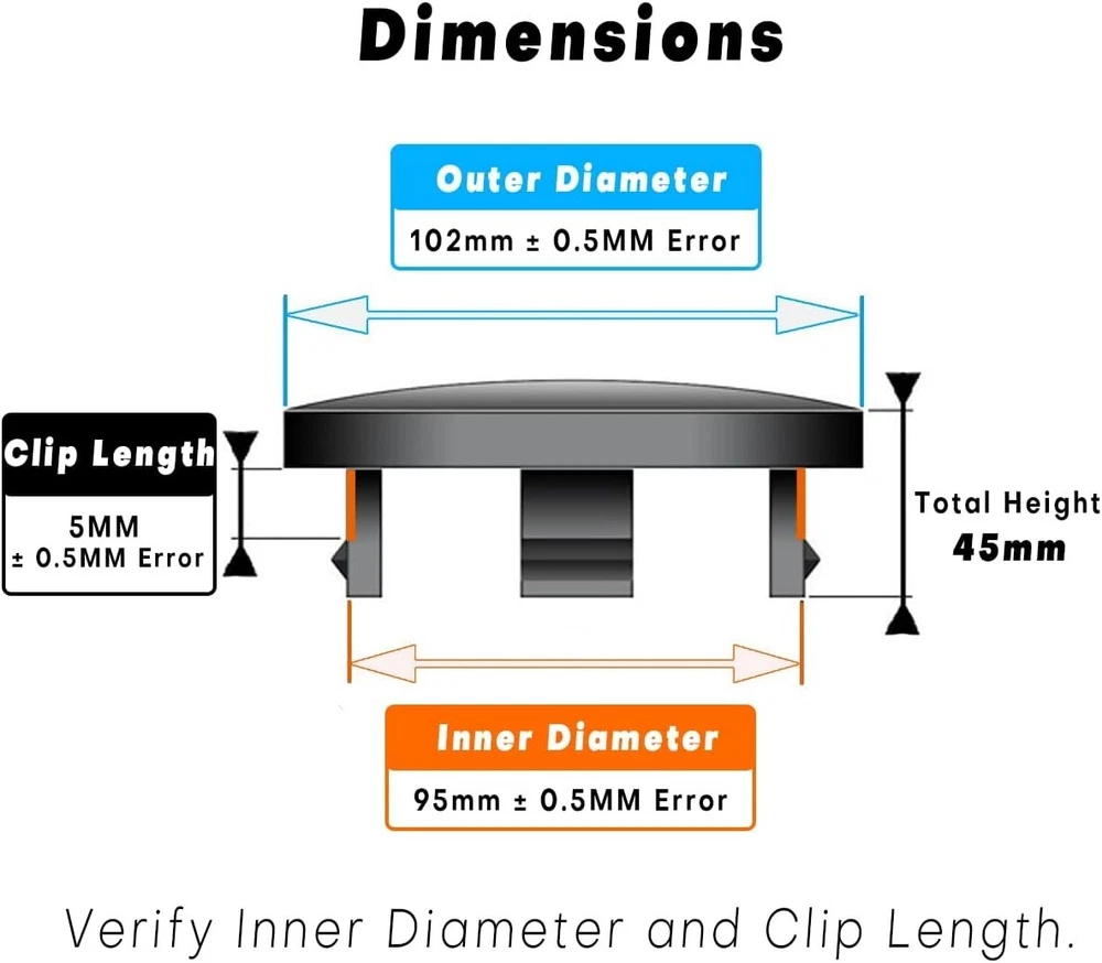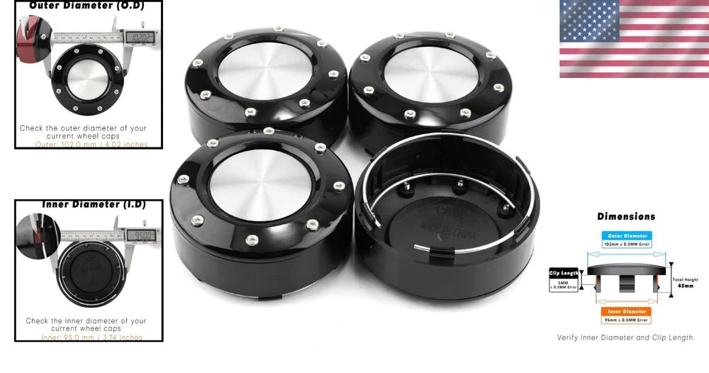 Stylish 102mm ABS Plastic Wheel Caps for Enhanced Vehicle Aesthetics - 4 Pack ‹ › ‹ › ‹ › ‹ › ‹ › ‹ › ‹ › ‹ › ‹ › Stylish 102mm ABS Plastic Wheel Caps Enhance your vehicle's aesthetics with our set of four premium wheel caps crafted from high-quality ABS plastic. Designed specifically to elevate the appearance of your wheel hubs while providing easy maintenance, these caps are a must-have for any car enthusiast. Product Features: Durable ABS plastic construction, ensuring long-lasting use and resistance to corrosion. Outer Diameter: 102mm (4.02 in) - Inner Diameter: 95mm (3.74 in). Clip Length: 8.5mm (0.33 in) and Total Height: 45mm (1.77 in). Perfect fit for a wide array of vehicles (see fitment details below). Easy installation: simply remove old caps and snap these into place for an instant upgrade. Includes options for custom logos to refresh your vehicle's look. Specifications: Set of 4 replacement rim center caps. Sleek design that keeps dirt and debris out for better maintenance. Sticker diameter: 58mm (2.29 in) for additional customization. Compatible with 6 lugs, ensuring a secure fit. Part number: 81232090F - for easy reference. Fitment: These wheel caps fit a variety of vehicles; please check the important sizes: Outer Diameter: 4.02 inches Inner Diameter: 3.74 inches Clip Length: 0.33 inches If you are unsure about your original cap dimensions, we recommend using a digital caliper for accuracy. For alternate sizes, visit our shop for more options. Why Choose Our Wheel Caps? Transform your vehicle with our stylish wheel caps that not only enhance aesthetic appeal but also provide protection against dirt and debris. Enjoy the satisfaction of an elevated look with minimal effort—installing these caps is a quick and straightforward process. With attention to detail and quality, we aim to offer you a product that blends functionality with style. Upgrade your wheels today and give your car a fresh, clean, and sophisticated appearance! Shipping Free & Fast Shipping - We offer free shipping to most of the USA with a normal delivery time of 3-7 days. However, due to the current situation, additional delivery time (up to 3 weeks) may be required for some items. Alternative Carriers - We may use alternative carriers (e.g. USPS, FedEx, UPS, etc.) to ensure your package arrives safely and on time. Due to the use of multiple carriers, we are unable to provide a tracking number automatically. Handling Time - Orders are processed and shipped within 1-2 business days of receiving cleared payment. Shipping Restrictions - Shipping to Alaska, Hawaii, Puerto Rico, Guam, and other US territories may incur shipping charges or delivery restrictions. Please contact us before ordering, or your order can be refunded/cancelled. State Restrictions - There may be restrictions based on your state of purchase. For example, certain items may not be shipped to California due to state regulations. Contact for Tracking Updates - If you require tracking updates or have any concerns about the delivery of your order, please feel free to contact us, and we will be happy to assist you. Return 30-Day Hassle-Free Returns - We want you to be completely satisfied with your purchase. If you are not, you can return the item within 30 days of receiving it for a full refund or exchange. Easy Return Process - To start a return, simply contact us and we will provide you with a prepaid return shipping label and detailed instructions. Restocking Fee - There are no restocking fees for returns. However, the buyer is responsible for return shipping costs if the return is not due to a seller's error. Refund Processing Time - Refunds will be processed within 5 business days of receiving the returned item in its original condition. Payment We accept all major credit cards, PayPal, and Apple Pay for your convenience. Your payment information is secure and encrypted to ensure a safe and seamless transaction. Please complete your payment within 3 days of purchase to avoid any delays in shipping. Feedback Your feedback is extremely important to us. We strive to provide the best products and customer service possible. If you are satisfied with your purchase, please take a moment to leave us a positive review. If you have any concerns or issues with your order, please contact us before leaving negative feedback. We are committed to resolving any problems and ensuring your satisfaction. Contact Us If you have any questions or concerns, please feel free to reach out to our customer support team. You can contact us through the eBay messaging system. We are available Monday to Friday, 9:00 am to 5:00 pm EST, and we will do our best to respond to your inquiry within 24 hours. Buy it now and enjoy a pleasant shopping experience! UPC: Not Set Placement on Vehicle: Front Features: Anti-fade Protection,Car Wash Safe,Easy to Install,Lightweight Material: Aluminum,Plastic,Steel,ABS Plastic Finish: Glossy Brand: Unbranded Emblem Type: GTownWorks Number in Pack: 4 Type: Wheel Center Cap Color: Black Manufacturer Part Number: Not Set OE/OEM Part Number: Not Set Outside Diameter: 102 mm Inside Diameter: 95 mm Country/Region of Manufacture: Not Set Manufacturer Warranty: Not Set Interchange Part Number: Not Set Superseded Part Number: Not Set Vintage Part: Not Set Universal Fitment: Not Set Performance Part: Not Set