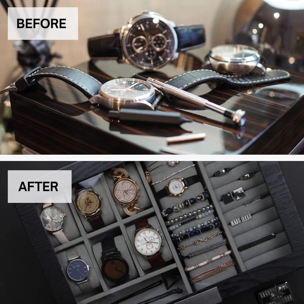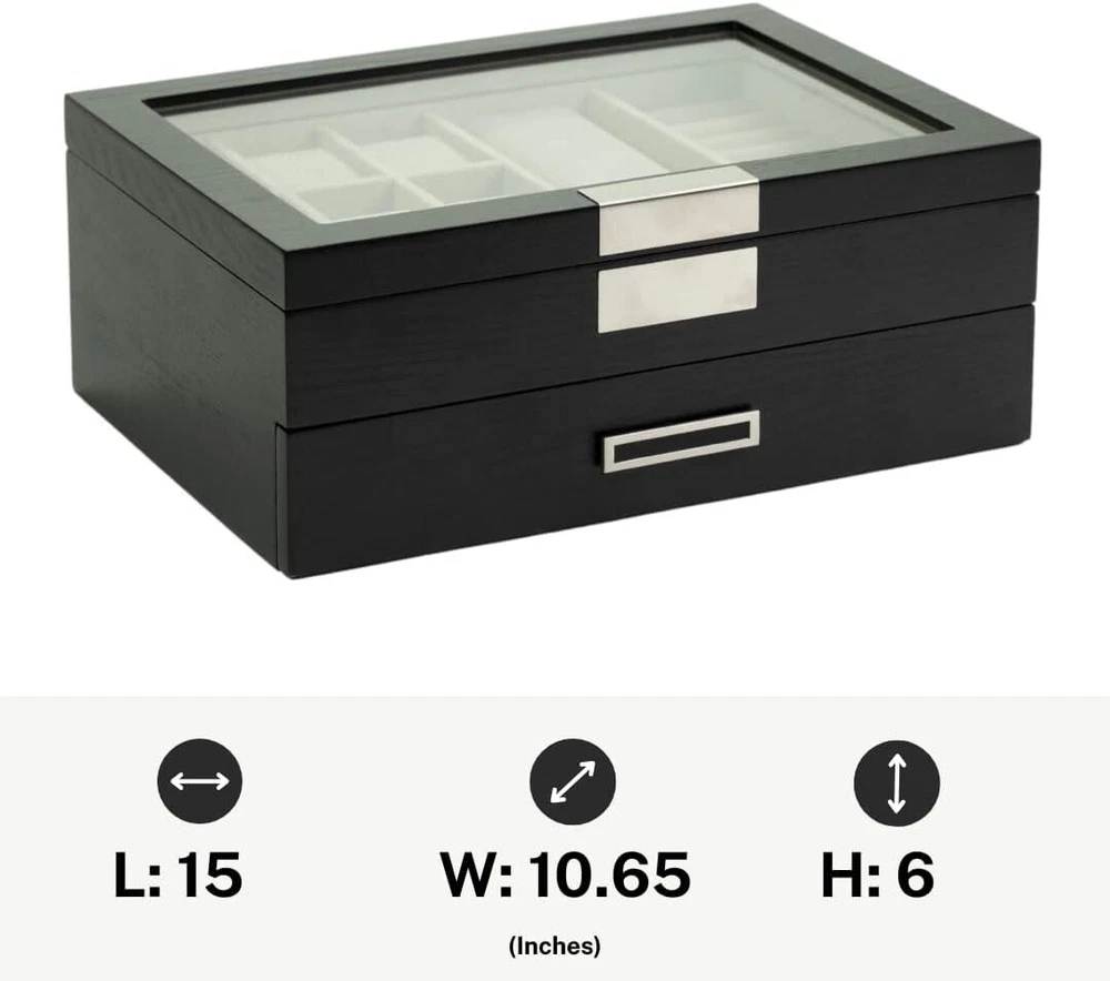 Stylish Portable Wood Valet Organizer with 14 Compartments for Jewelry & More ‹ › ‹ › ‹ › ‹ › ‹ › ‹ › ‹ › ‹ › ‹ › ‹ › ‹ › Stylish Portable Wood Valet Organizer Elevate your organization game with this exquisite Wood Valet Organizer, expertly crafted to house your most cherished belongings, including jewelry and accessories. Features: Elegant wooden design that adds a touch of sophistication to any space. 4 thoughtfully designed compartments to accommodate a variety of items, from rings and necklaces to watches and more. Portable design allows for seamless transition from home to travel. Soft lining protects your valuables from scratches and damage. Stylish finish enhances any decor, making it a beautiful addition to your dresser or bedside table. Benefits: Keep your jewelry and accessories neatly organized and easily accessible. Perfect for both personal use and as a thoughtful gift for loved ones. Adds elegance and charm to your space while serving a practical purpose. Experience peace of mind knowing your items are well cared for and beautifully displayed. Why Choose Our Valet Organizer? Transform your cluttered space into an oasis of organization with our Stylish Portable Wood Valet Organizer. With its chic design and practical compartments, you can effortlessly store and showcase your jewelry and accessories. Whether at home or on the go, this organizer is not just a functional piece—it's a statement of elegance that reflects your personal style. Don’t let your treasured items remain in disarray. Invest in this organizer today and experience the harmony of style and functionality in your everyday life. Shipping Free & Fast Shipping - We offer free shipping to most of the USA with a normal delivery time of 3-10 businessdays. However, due to various situations, additional delivery time (up to 3 weeks) may be required for some items. Alternative Carriers - We may use alternative carriers (e.g. USPS, FedEx, UPS, etc.) to ensure your package arrives safely and on time. Due to the use of multiple carriers, we are unable to provide a tracking number automatically. Handling Time - Orders are processed and shipped within 1-5 business days of receiving cleared payment. Shipping Restrictions - Shipping to Alaska, Hawaii, Puerto Rico, Guam, and other US territories may incur shipping charges or delivery restrictions. Please contact us before ordering, or your order can be refunded/cancelled. State Restrictions - There may be restrictions based on your state of purchase. For example, certain items may not be shipped to California due to state regulations. Contact for Tracking Updates - If you require tracking updates or have any concerns about the delivery of your order, please feel free to contact us, and we will be happy to assist you. Return Please see our ebay return policy. We do not accept return on most products. This is to avoid customers mis-using ebay returns. All sales are final. Please be sure to check the return policy listed at the top of the listing. In rare cases, we may accept returns, if the buyer pays both ways shipping and 20% restocking fee. If you are un-sure of return policy of a particular item, please ask before buying. Payment We accept all major credit cards, PayPal, and Apple Pay for your convenience. Your payment information is secure and encrypted to ensure a safe and seamless transaction. Please complete your payment within 3 days of purchase to avoid any delays in shipping. Feedback Your feedback is extremely important to us. We strive to provide the best products and customer service possible. If you are satisfied with your purchase, please take a moment to leave us a positive review. If you have any concerns or issues with your order, please contact us before leaving negative feedback. We are committed to resolving any problems and ensuring your satisfaction. Contact Us If you have any questions or concerns, please feel free to reach out to our customer support team. You can contact us through the eBay messaging system. We are available Monday to Friday, 9:00 am to 5:00 pm EST, and we will do our best to respond to your inquiry within 24 hours. Buy it now and enjoy a pleasant shopping experience! UPC: Not Set Unit Quantity: 115 oz Items Included: Jewelry Box Suitable For: Bracelet,Earring,Necklace,Ring,Watch Material: Glass,Velvet,Wood Theme: Not Set Features: Lined,Portable,Magnetic Closure,Ultimate Protection,Magnetic Brand: Unbranded Type: Jewelry Box Color: Black Lining Material: Velvet Shape: Rectangle Country/Region of Manufacture: Not Set Department: Unisex Adults Capacity: More Than 25 Pieces Item Length: Not Set Item Depth: 15 in Item Width: 10.65 in MPN: Not Set Unit Type: oz Vintage: Not Set Handmade: Not Set Personalize: Not Set Customized: Not Set
