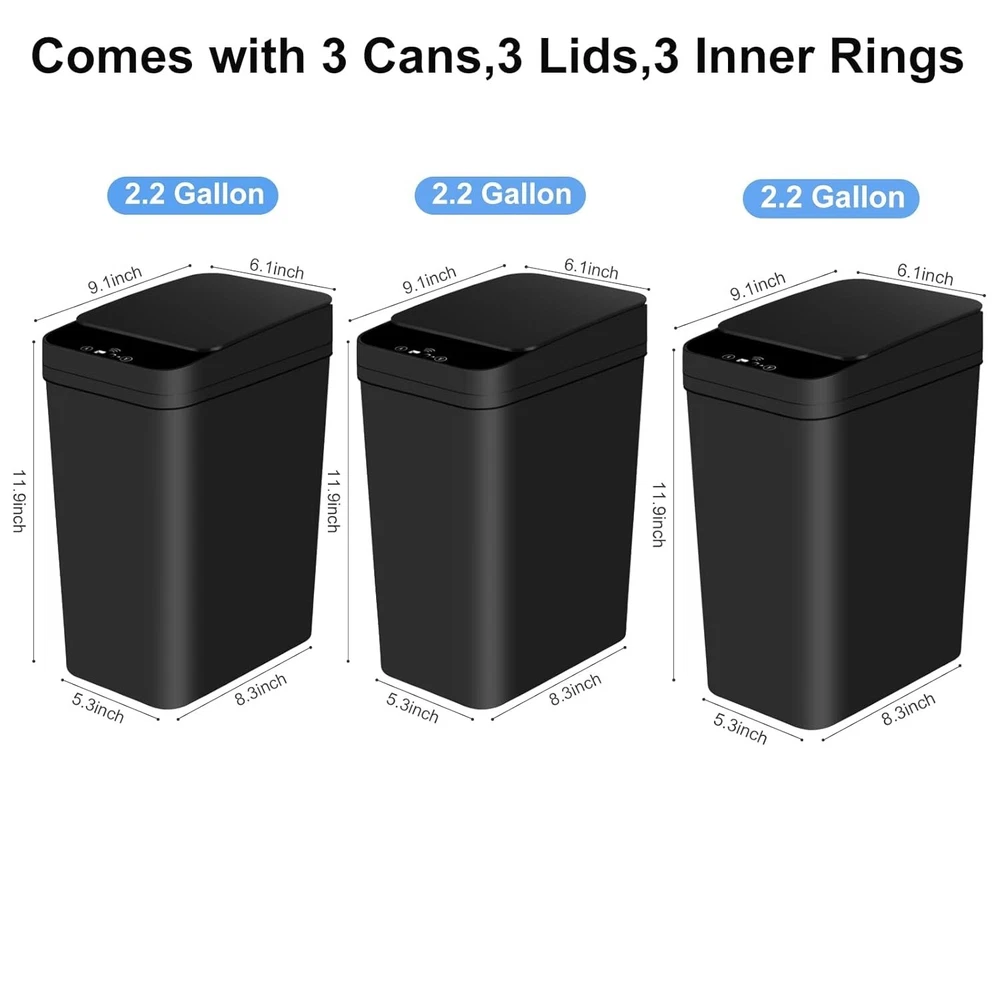Stylish 2.2 Gallon Motion Sensor Trash Can Set - Perfect for Bathroom & Office ‹ › ‹ › ‹ › ‹ › ‹ › ‹ › ‹ › ‹ › ‹ › Stylish 2.2 Gallon Motion Sensor Trash Can Set Perfect for Bathroom & Office Features: Compact 2.2-gallon capacity, dimensions: 9.3''L × 6''W × 12.6''H - Ideal for small spaces. 3 Pack ultra-thin design, perfect for tight crevices. Powered by 2 AA batteries (not included) for added convenience. Advanced automatic motion sensor technology for effortless hands-free operation. Silent opening and closing with air damping technology for nighttime use without disturbing rest. High-quality materials with a seal lid design to effectively control odors. Benefits: Space-saving solution for any bathroom or office. Airtight design locks in odors, keeping your space fresh. Precision sensing technology enables hassle-free disposal without bending over. Durable design withstands wet environments, perfect for any room. Whisper-quiet operation ensures a peaceful environment, even at night. Why choose our 2.2 Gallon Motion Sensor Trash Can Set? Elevate your home or office space with our stylish and functional 2.2-gallon motion sensor trash can set. Designed specifically for small areas, this elegant solution not only conserves space but also seals in unwanted odors, providing a fresh ambiance in your home. Enjoy the ease of touchless disposal with advanced motion sensing technology that responds to your every movement - no more bending or messy spills. With a sleek design, durable materials, and silent operation, this trash can set is perfect for bathrooms, office spaces, or any corner of your home requiring both practicality and a touch of elegance. Don't compromise on style or functionality – order your set today! Shipping Free & Fast Shipping - We offer free shipping to most of the USA with a normal delivery time of 3-7 days. However, due to the current situation, additional delivery time (up to 3 weeks) may be required for some items. Alternative Carriers - We may use alternative carriers (e.g. USPS, FedEx, UPS, etc.) to ensure your package arrives safely and on time. Due to the use of multiple carriers, we are unable to provide a tracking number automatically. Handling Time - Orders are processed and shipped within 1-2 business days of receiving cleared payment. Shipping Restrictions - Shipping to Alaska, Hawaii, Puerto Rico, Guam, and other US territories may incur shipping charges or delivery restrictions. Please contact us before ordering, or your order can be refunded/cancelled. State Restrictions - There may be restrictions based on your state of purchase. For example, certain items may not be shipped to California due to state regulations. Contact for Tracking Updates - If you require tracking updates or have any concerns about the delivery of your order, please feel free to contact us, and we will be happy to assist you. Return Please see our eBay Return Policy. Thank you. Payment We accept all major credit cards, PayPal, and Apple Pay for your convenience. Your payment information is secure and encrypted to ensure a safe and seamless transaction. Please complete your payment within 3 days of purchase to avoid any delays in shipping. Feedback Your feedback is extremely important to us. We strive to provide the best products and customer service possible. If you are satisfied with your purchase, please take a moment to leave us a positive review. If you have any concerns or issues with your order, please contact us before leaving negative feedback. We are committed to resolving any problems and ensuring your satisfaction. Contact Us If you have any questions or concerns, please feel free to reach out to our customer support team. You can contact us through the eBay messaging system. We are available Monday to Friday, 9:00 am to 5:00 pm EST, and we will do our best to respond to your inquiry within 24 hours. Thank you for supporting our small family business! UPC: Not Set Unit Quantity: 2.2 Room: Bathroom,Bedroom,Kitchen,Living Room,Office Material: Plastic Features: Automatic,Removable Lid,Motion Sensor,Odor Seal Suitable For: Indoor Brand: Unbranded Item Height: Automatic Trash Can Item Length: Automatic Trash Can Item Width: Automatic Trash Can Type: Trash Can Color: Black Capacity: 2.2 gal Size: Small Number of Compartments: 1 Model: Not Set Item Weight: 5.2 lb MPN: Not Set Shape: Rectangle Style: Modern Pattern: Not Set Country/Region of Manufacture: Not Set Finish: Polished Unit Type: gal Personalize: Not Set