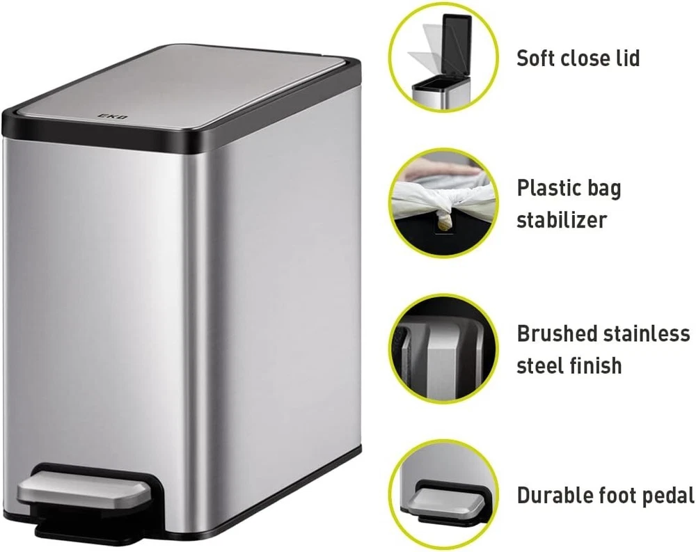 Stylish 2-Pack 1.6G Stainless Steel Step Trash Cans - Fingerprint Resistant ‹ › ‹ › ‹ › ‹ › ‹ › ‹ › ‹ › ‹ › ‹ › ‹ › ‹ › Stylish 2-Pack 1.6G Stainless Steel Step Trash Cans - Fingerprint Resistant - Made of 95% Stainless Steel, 5% Polypropylene Highlights: Double the Convenience: This EcoCasa II Combo Set offers two 1.6-Gallon (6L) step trash cans, perfect for homes with multiple bathrooms. Fingerprint Resistant: Designed with a sophisticated fingerprint-resistant finish, these trash cans maintain a spotless appearance with ease. Soft Close Lid: Experience the luxury of a snug seal, enhancing a silent and soft-closing mechanism to prevent disruptive noises. Sturdy Step-on Pedal: Built to last over 200,000 uses, our durable stainless steel foot pedal ensures smooth and reliable operation for over 25 years. Removable Inner Bucket: Cleaning is a breeze with the removable inner bucket that keeps garbage bags securely in place for a tidy presentation. Why Choose Our Stainless Steel Step Trash Cans? Elevate the elegance of your home with our Stylish 2-Pack Stainless Steel Step Trash Cans. Crafted with a sleek fingerprint-resistant finish, each can reflects a commitment to both aesthetics and functionality. The whisper-soft close lid ensures peace in your environment, while the sturdy step-on pedal promises durability through years of usage. The practicality of removable inner buckets guarantees effortless cleaning and tidy presentations, making these trash cans an essential addition to your home. Ideal for modern living, where both style and performance are paramount, this combo set is designed to harmonize beautifully with your décor while providing coherent solutions for your waste disposal needs. Choose sophistication and resilience — order your Stylish 2-Pack of Stainless Steel Step Trash Cans today! Shipping Free & Fast Shipping - We offer free shipping to most of the USA with a normal delivery time of 3-7 days. However, due to the current situation, additional delivery time (up to 3 weeks) may be required for some items. Alternative Carriers - We may use alternative carriers (e.g. USPS, FedEx, UPS, etc.) to ensure your package arrives safely and on time. Due to the use of multiple carriers, we are unable to provide a tracking number automatically. Handling Time - Orders are processed and shipped within 1-2 business days of receiving cleared payment. Shipping Restrictions - Shipping to Alaska, Hawaii, Puerto Rico, Guam, and other US territories may incur shipping charges or delivery restrictions. Please contact us before ordering, or your order can be refunded/cancelled. State Restrictions - There may be restrictions based on your state of purchase. For example, certain items may not be shipped to California due to state regulations. Contact for Tracking Updates - If you require tracking updates or have any concerns about the delivery of your order, please feel free to contact us, and we will be happy to assist you. Return 30-Day Hassle-Free Returns - We want you to be completely satisfied with your purchase. If you are not, you can return the item within 30 days of receiving it for a full refund or exchange. Easy Return Process - To start a return, simply contact us and we will provide you with a prepaid return shipping label and detailed instructions. Restocking Fee - There are no restocking fees for returns. However, the buyer is responsible for return shipping costs if the return is not due to a seller's error. Refund Processing Time - Refunds will be processed within 5 business days of receiving the returned item in its original condition. Payment We accept all major credit cards, PayPal, and Apple Pay for your convenience. Your payment information is secure and encrypted to ensure a safe and seamless transaction. Please complete your payment within 3 days of purchase to avoid any delays in shipping. Feedback Your feedback is extremely important to us. We strive to provide the best products and customer service possible. If you are satisfied with your purchase, please take a moment to leave us a positive review. If you have any concerns or issues with your order, please contact us before leaving negative feedback. We are committed to resolving any problems and ensuring your satisfaction. Contact Us If you have any questions or concerns, please feel free to reach out to our customer support team. You can contact us through the eBay messaging system. We are available Monday to Friday, 9:00 am to 5:00 pm EST, and we will do our best to respond to your inquiry within 24 hours. Buy it now and enjoy a pleasant shopping experience! UPC: Not Set Unit Quantity: 2.0 count Room: Bathroom,dormitory,bedroom,home office Material: Stainless Steel,Polypropylene Features: Soft Close Lid,Fingerprint Resistant,Easy To Clean,Removable Inner Bucket,Sturdy Step-on Pedal Suitable For: Indoor,bathroom,dorm,bedroom,home office Brand: Unbranded Item Height: Small Bathroom Trash Can Item Length: Small Bathroom Trash Can Item Width: Small Bathroom Trash Can Type: Step On Trash Can Color: Stainless Capacity: 1.6 Gal Size: 6L Combo - Premium SS Number of Compartments: 1 Model: Not Set Item Weight: 3 lb MPN: Not Set Shape: Rectangle Style: Modern Pattern: Not Set Country/Region of Manufacture: Not Set Finish: Brushed Unit Type: Unit Personalize: Not Set