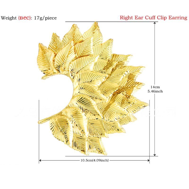 Feature: Great Bib Fashion Jewelry,Big Leaf Earring For Non Piercing Ears, item to light up the night for party, prom, bridal wedding and engagement party. You can also use this earring as a unique present to your loved ones, girlfriend, your female or even yourself for birthday,party,prom, Christmas day, and so on Item Type:Jewelry Findings Metal:zinc alloy and Color: Gold Pattern:Leaf Size: 14 x 10.5 for cm/5.5"x 4" Quantity: 1 Pc Note:1.Please allow 1-3cm error due to manual measurement. pls make sure you do not mind before you bid. 2.Due to the difference between different monitors, the picture may not reflect the actual color of the item. Thank you! Package includes(without retail package): 1 Pc x Leaf Earring.