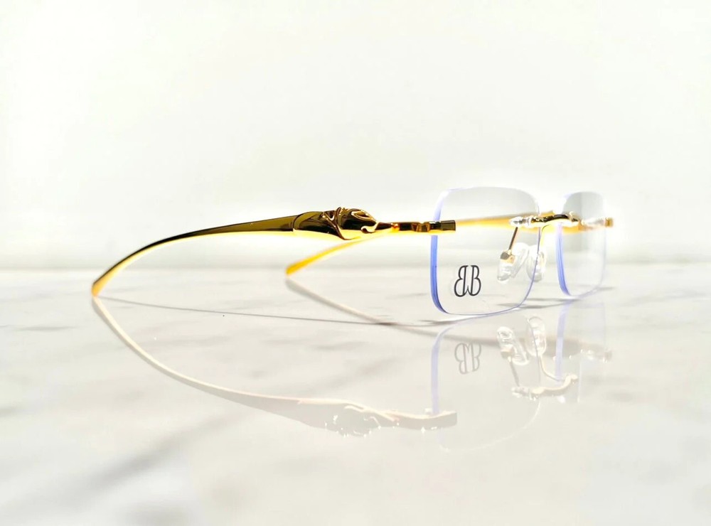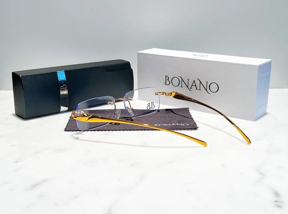 Brand: Bonano Model: Calabria Size: 54-18-140 Color: Gold :Handmade stainless steel construction plated in 18k gold :Handmade Jaguar adorns both left & right temple :18k gold plated metal frame inlay, temple and segments :Bonano Signature logo inlay inner right temple :Bonano CR-39 Non Prescription Clear Demo Lenses. :Comes with Bonano storage box, cleaning cloth, hard-case & frames + lenses :Frame Size 54-18-140 SHARE SHARE ON FACEBOOK TWEET TWEET ON TWITTER PIN IT PIN ON PINTEREST