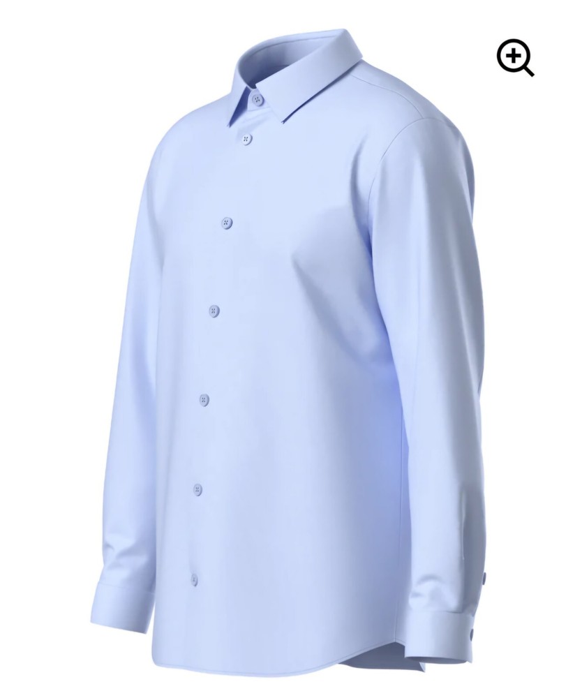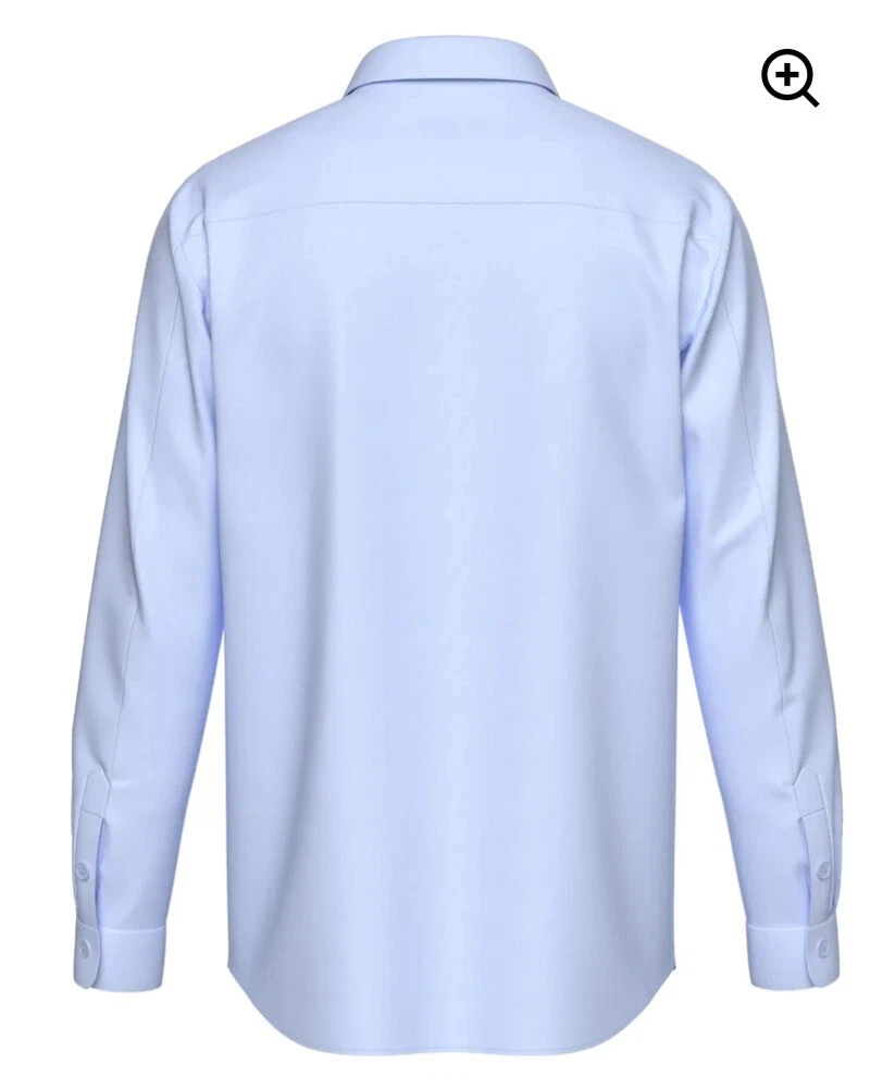 This tailored dress shirt is in a solid sky blue color with a collared neckline and button closure. It features long sleeves with barrel cuffs and is made from a comfortable 4-way stretch fabric (82% nylon, 18% spandex), making it breathable and suitable for various occasions such as travel, weddings, parties, or everyday wear. The shirt is in a size small and is machine washable, ideal for both formal and casual settings.