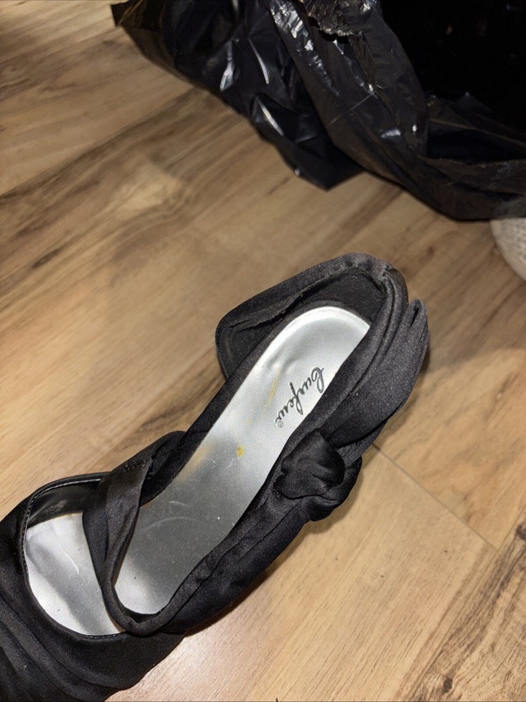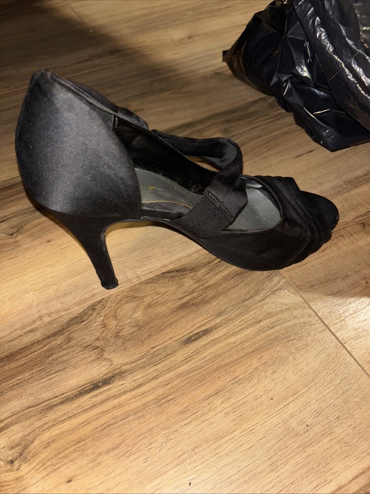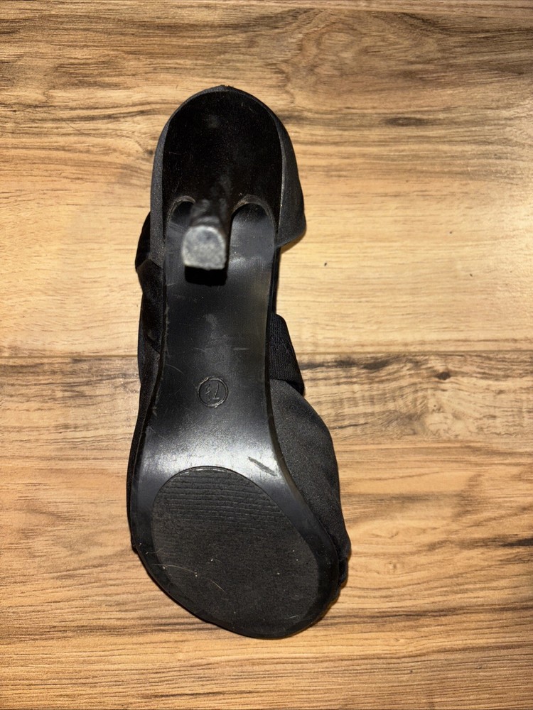 Elevate your style with these stunning black open-toe heels. Perfect for any formal occasion or party, these shoes add a touch of elegance to any outfit. The 7.5 US shoe size ensures a comfortable fit, while the unknown style and upper material add an element of mystery to your wardrobe. These shoes are customized with no vintage wear, making them perfect for any modern fashionista. Made in China, these heels are a must-have addition to any wardrobe. Has a few scuffs and have been worn but still is fair condition