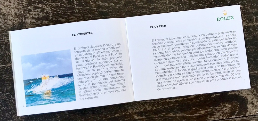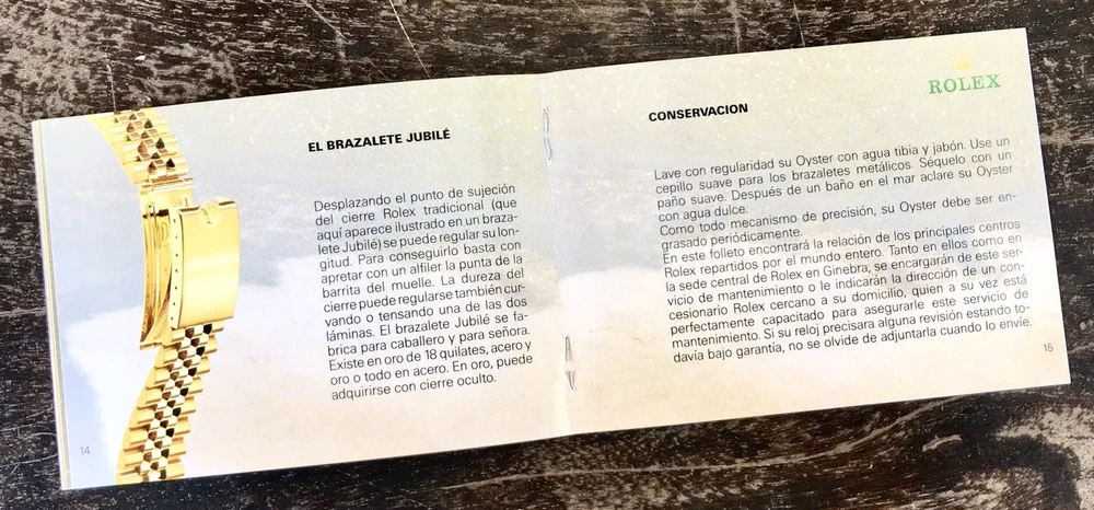 ROLEX Genuine Booklet ''Su Rolex Oyster'' Ref: 579.54 Sp - 15 - 1.2000 Year: 2000 Language: Spanish THIS IS NOT A WATCH Measure: 12,5 x 9 cm Private Collection ORIGINAL ---------------------------------------------- These products are being sold for Collection purposes ONLY. I am Member of WTA since 1998 I am not affiliated with Rolex . I am not an official Rolex Dealer Questions : Please ask us all the questions you have before bidding. ------------------------------------------------- We sell products that might have been used or otherwise known as "take-offs". Some parts are like new or very gently used, and others show signs of wear and may need to be cleaned or polished. Please see pictures for more details. We try to take pictures of any defects the item may have. If you have any additional questions, feel free to ask us and we will get back to you as soon as possible. Customer Service If for any reason you have an issue with our product, please choose “Contact Seller” via eBay before leaving negative feedback or opening a case. We promise to resolve any issues as soon as possible. Positive feedback and 5-star seller ratings are extremely important to us as we are looking to provide outstanding products and services to our customers. Returns We reserve the right to charge a 10% restocking fee on all returns. Shipping and handling charges are not refundable. The buyer is responsible for the return shipping fee. Shipping We typically ship orders Monday through Friday (except for Holidays) within 3 business days of receipt of cleared payment. Please make sure your shipping address is correct before sending payment. All orders are shipped with a tracking number. You will receive and email with it as soon as your order ships. Please allow a few extra days for delivery if there is a weather problem. IMPORTANT NOTE FOR INTERNATIONAL BUYERS All our goods are shipped from Spain, but we are a UK based eBay shop, sales to the European community might be subject to VAT. Please see the link below: VAT on eBay purchases for EU buyers | eBay.com BUYERS OUTSIDE THE EUROPEAN UNION: The tariffs, duties and import taxes are not included in item price or shipping charges. These charges are the responsibility of the buyer. Refer to the customs authorities of your country to inquire about these costs before bidding on an item or buying it. These fees are usually charged by the carrier or when the buyer takes the item and should not be confused with additional shipping costs.