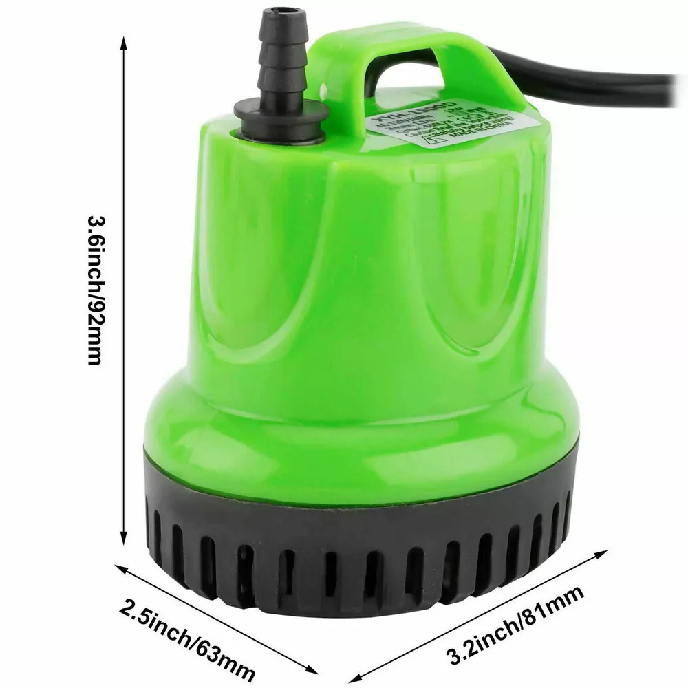 Note: Warehouse error to the product labeled as 220V, the actual voltage is 110V. mind careful to shoot !!! Feature: ◆12W high-efficiency energy-saving motor. (Make sure to connect the water pipe to the smallest nozzle and make sure the joint is tightly sealed). ◆Ultra-quiet design, with 2 nozzles (0.33 inches and 0.5 inches). High-quality motors provide you with a quiet environment. The threaded joint makes it more stable. The impeller shaft is stainless steel with long service life and corrosion resistance. ◆Suction cups: 4 powerful rubber suction cups at the bottom of the pump help to fix it in place, reduce resonance and make it quieter. ◆360°water pump: The water inlet is close to the bottom of the cylinder, the lowest water level can be lower than 1cm/0.4", and the water is absorbed more thoroughly. ◆Removable and washable: The submersible pump can be disassembled without any tools, which is very convenient for cleaning. ◆Wide applications: high-performance energy-saving pumps, designed for ponds, fountains, waterfalls, hydroponic systems, irrigation systems and water features. Specification: material: plastic Color: green Voltage: 110V ◆12W: Maximum lifting height: 4 feet. Maximum flow: 158GPH (600L/H) Voltage: 110V/60HZ Outlet: suitable for 5/16" or 1/2" ID (inner diameter) tube Power cord length: 5.9ft Package included: 1x pump 2 x socket adapter On Nov 29, 2024 at 23:32:58 PST, seller added the following information: