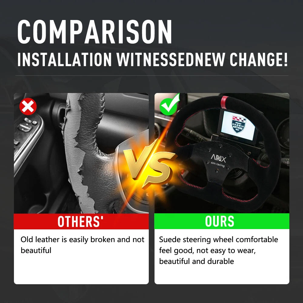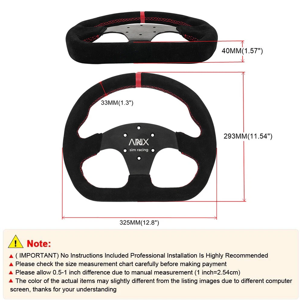 Suede Leather Steering Wheel + Hub Adapter For Thrustmaster T500/T300 /TS-PC/TX SPECIFICATIONS: Type: Steering Wheel/Hub Adapter Material: Aluminum Spoke PU Leather Wrap Diameter: 327mm/12.9" FEATURES : 100% Brand New and Never Used or Installed 【 HUB ADAPTER:】 Solid 1 piece aluminum construction reinforced with 6 bolts Much durable than lightweight plastic adapters substantially stronger than other non-reinforced plastic adapters on the market Comes with 6 wheel bolts to attach your wheel Compatible with Thurstmaster TX , T300 , T500 , TS-PC , TS-XW , T-GT Servo Bases 70mm / 74mm X 6 PCD Bolt Pattern 【STEERING WHEEL:】 Appropriate size light weight Comfortable hand touch feeling Fine workmanship Fashionable and generous Antiwear rustproof and durable Made of Vinyl Leather , has strong corrosion resistance can withstand great impact FITMENT : For Thustmaster Racing Games PACKAGE INCLUDE: 1 x Steering Wheel 1 x Aluminum Adapter Steering Wheel 6 x Bolts 1 x Installation Key All accessories as shown are included. NOTE: 1. Please allow 0.5-1 inch difference due to manual measurement. (1 inch=2.54cm) 2. Please check the size measurement and the picture carefully before making payment. 3. Due to the difference between different monitors, the picture may not reflect theactual color of the item. Please understand, Thank you. SHIPPING INFORMATION PAYMENT WARRANTY ABOUT US CONTACT US SHIPPING INFORMATION We will only ship this item to buyers by Normal Mail, please confirm your address is correct, and if you want to change the delivery address, just feel free to contact us when you purchase. Usually, we will ship the orders out and upload the tracking number within 1-2 business days(Monday to Saturday from 8:30am-5:30pm) after you complete the payment. PAYMENT We will only accept eBay payment. Please pay using eBay payment ONLY within 7 days from the date of transaction be made. WARRANTY Please inspect your order upon receipt.No damage claims will be honored after 14 days of delivery. All item we sold come with 90 days defective warranty from the date. ABOUT US We are a powerful factory producing auto parts,and we have a professional sales and after-sales team that can provide you with excellent products and services. CONTACT US For any reason you want to contact us,We aim at satisfying every visitor, no matter what kind of situation you meet with, we will be right here to serve you. Please contact our team. If you are happy with the transaction with us, leaving us an ALL-5-STAR positive feedback would be greatly appreciated. Have a good shopping.