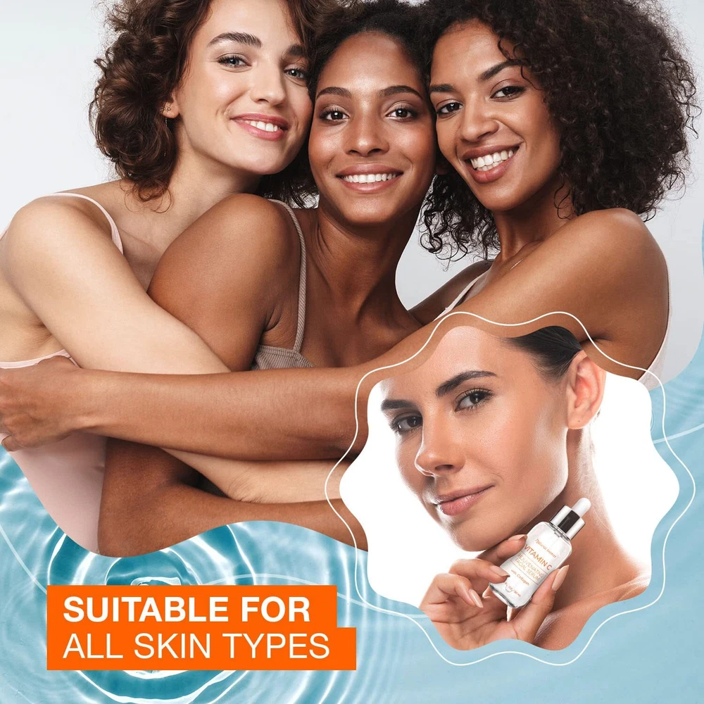 ULTIMATE HYDRATION: Experience deep hydration with our facial serum, replenishing moisture for a plump and hydrated complexion. Say goodbye to dryness and hello to a radiant glow! BRIGHTENS SKIN TONE: Infused with Vitamin C, our serum brightens the skin, reducing dullness and promoting a more even skin tone. Unveil a luminous complexion that radiates with youthful vitality! FIXES BLEMISHES & ACNE: Our serum targets blemishes and acne, working to improve the appearance of skin imperfections. Enjoy a clearer and smoother complexion, free from unwanted breakouts! ANTI-AGING POWERHOUSE: Experience the anti-aging benefits of our facial serum. Vitamin C and Collagen help diminish the signs of aging, such as fine lines and wrinkles, for a more youthful and rejuvenated appearance. Embrace timeless beauty! DERMATOLOGIST TESTED & CRUELTY-FREE: Formulated by professional and experienced Korean Skin Care experts and packed with clean ingredients you can feel good about! Backed by rigorous dermatologist testing to ensure safe & proven results, while adhering to strict cruelty-free standards. MONEY-BACK GUARANTEE: If you have any challenges using Facial Serum, reach out anytime for help from our skincare experts. We'll respond ASAP! If you're not totally satisfied, we will refund you in full.