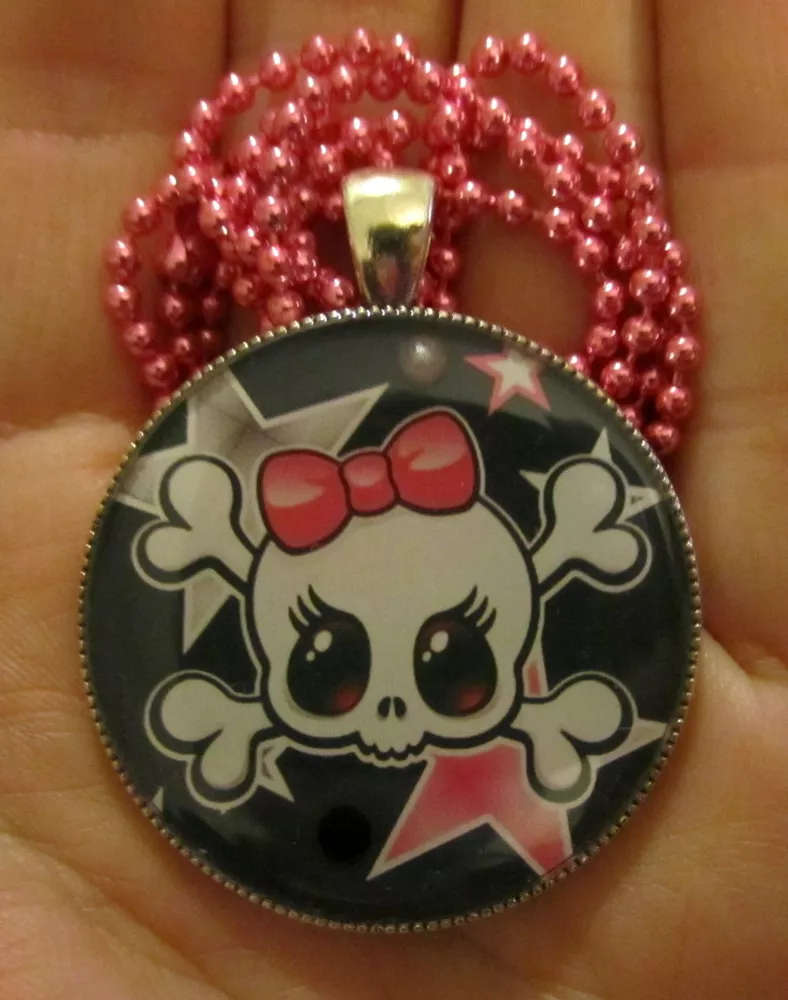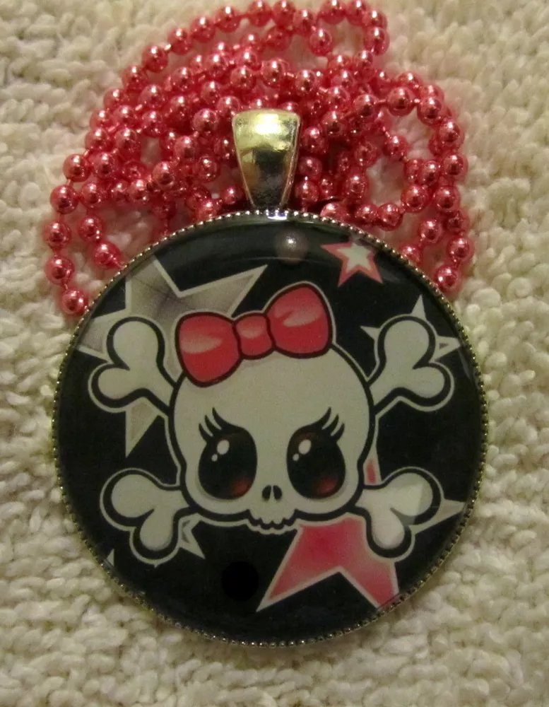 DETAILS My pics turned out very dark but I assure you this is a beautiful necklace. If interested, contact me and Ill get better pics if needed. This listing is for a high quality, handmade by me *Sugar Skull Skullette* silver setting necklace. This item can be made into a keychain, etc per request. The pendant is a silver setting that I decorated and filled with resin. The pendant measures approx. 1-1/2 inch in diameter...I have attached it to a ball chain...color is your choice! If you prefer a different type of chain...please contact me. This resin piece is handmade by me with love using only the highest quality products. Please feel free to ask questions. PLEASE SEE NOTES BELOW!! **MY RESIN GUARANTEE** My handcasted resins are made by me with love and great care in my home. I take great pride in them and take no short cuts. They do not pass my careful inspection and get put up for sale unless I feel they are perfect! I will not sell anything that I would not buy myself! I use the best quality products including "Ice Resin" which is considered one of the "best" and is not to yellow over time. I want everyone that buys one of my resins to be totally happy!! If you receive a piece that you are not happy with for ANY reason, you may return it for a full refund. If you have a problem with breakage, which is very rare, I will gladly fix it for you or replace. I offer excellent customer service and want you to be 100% satisfied with your resin purchase. I do take custom orders but please know that it can take 1-2 weeks to complete one piece. I will NOT rush them or pump them out like a factory! Please also know that I am not a professional photographer so my pictures arent always the best, however, I promise you the actual resin piece is beautiful and guaranteed so know that you can always return it if you are not happy with it. Resin's are VERY hard to photograph and get all the gorgeous details! I guarantee your satisfaction and will ALWAYS do my very best to make my customers happy!! Thank you!! FEEDBACK POLICY DUE TO A LARGE NUMBER OF BUYERS THAT NEVER RETURN FEEDBACK...I WILL ONLY GIVE IT AFTER THE BUYER DOES. WHEN THE BUYER RECEIVES THEIR ITEM AND LEAVES ME POSITIVE FEEDBACK, I PROMISE TO RETURN THE FEEDBACK TO THEM. SOMETIMES IT TAKES ME A FEW DAYS BUT I WILL GET IT TO YOU!! IF THE BUYER IS NOT HAPPY WITH SOMETHING I ASK THEM TO PLEASE CONTACT ME BEFORE LEAVING FEEDBACK AND GIVE ME THE FAIR CHANCE TO MAKE THINGS RIGHT!! I HOPE THAT MY BUYERS WILL UNDERSTAND AND I THANK YOU!! QUESTIONS Ask any question that you may have. If you are not happy with this item when you receive it.... please contact us instead of leaving a negative feedback. We are always willing to work anything out. Our customers come first and we want them to be happy. We always promise excellent customer service. A happy customer comes back!! We stand 100% behind our products and 100% guarantee all of them!! PAYMENT DETAILS USA and OUTSIDE USA: We accept PAYPAL payments. We do combine shipping on multiple items IF all items are paid within one payment. PLEASE WAIT FOR COMBINED SHIPPING INVOICE!! If you cannot pay with Paypal immediate, please let us know right away. This will keep us from bothering you with tons of invoices because we will know when to expect your payment!! Items MUST be paid for within 4 days. If not, We will relist the item and file a Non-Paying Bidder complaint. We truly hope that all transactions can be smooth and pleasant!! PLEASE understand that shipping is more than just stamps or postage. We do combine shipping on multiple items IF all items are paid within one payment. PLEASE WAIT FOR COMBINED SHIPPING INVOICE!! I try and ship items out within 24-48 hours after payment is received. I am very careful to package items extremely well which requires alot of high quality packing materials. Please also understand that no matter how fast I ship...the postal service is out of our control. Thank you! FOR RETURNS If you feel that you are not happy with an item, please CONTACT ME before leaving feedback. If the item is broken...I require return and will refund your payment in full when the item gets back to me. If you just dont want the item and choose a REFUND please understand that I cannot issue it until I have the item back in my home and it is in the EXACT shape as when it left. You will need to return the item at your own expense and refunds do not include shipping unless the item is broken or not as described. This is the only way that I can recover some of my costs that I would otherwise lose. THANK YOU!!