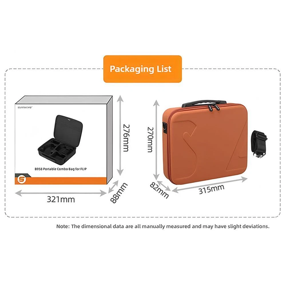 Description Description&Preview shipping&policy Description: 1. Zipper mesh bag, can store spare propellers, screwdrivers, charging cables and other accessories 2. High-quality frosted leather, waterproof, moisture-proof and dust-proof, upgraded care 3. Shock-absorbing and pressure-resistant hard shell, effectively protect your drone, safe and reliable 4. High-quality inner support, precise mold opening, shockproof, drop-proof and scratch-proof 5. Can be carried by hand or cross-body, convenient travel, lightweight and portable, easy to handle outdoor travel Color: black/gray/orange Applicable model: For DJI Flip Material: high-quality leather + EVA Single set weight: 740g Single set contains: storage bag*1 Preview: Thank you for your purchase Problems? You can follow below process to contact us. There is a time zone difference,but we will do our best to quickly response to your questions: Shipping ● We will arrange shipping for you within 24 Hours after payment cleared except the holidays. ● We always send the item to the address you give us on Payoneer to ensure the security of the item. If you have changed your address, or want us to ship to another address, please change to the new address when you pay us with Payoneer, otherwise we will not be responsible if the package is lost. Payments We accepts Payoneer only If you have any questions about the payment,please contact us through eBay message. Import Duties In case some duty is due Upon delivery, it is your responsibility to meet that expense and this may cause delays to delivery schedule and you may have to pickup goods at the customs office. Terms & Conditions By bidding on this item,the Buyer agrees to all of the terms and conditions as outlined in this listing .please ensure to read and agree to All eBay terms and Conditions before bidding. All pictures are for illustration purpose only and Colours may vary slightly. Our store obeys all eBay Rules and Policies. Returns Policy To Return an item you must contact us and take photos of your item to clearly show any damage or unusual aspects of it. Approved returns will be subject to inspection on arrival. Items must be returned in original condition with all original packaging. All shipping and handing charges are non-refundable Return delivery costs are the responsibility of the buyer. We will cover the cost if sending replacement/repaired items. Within 7 days after receiving your products, we offers a no-hassle 7 day exchange/replace only if your items are found to be defective by manufacturer.