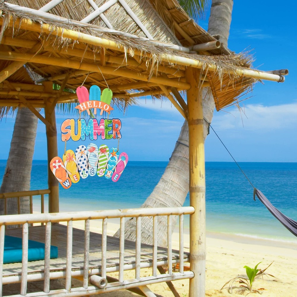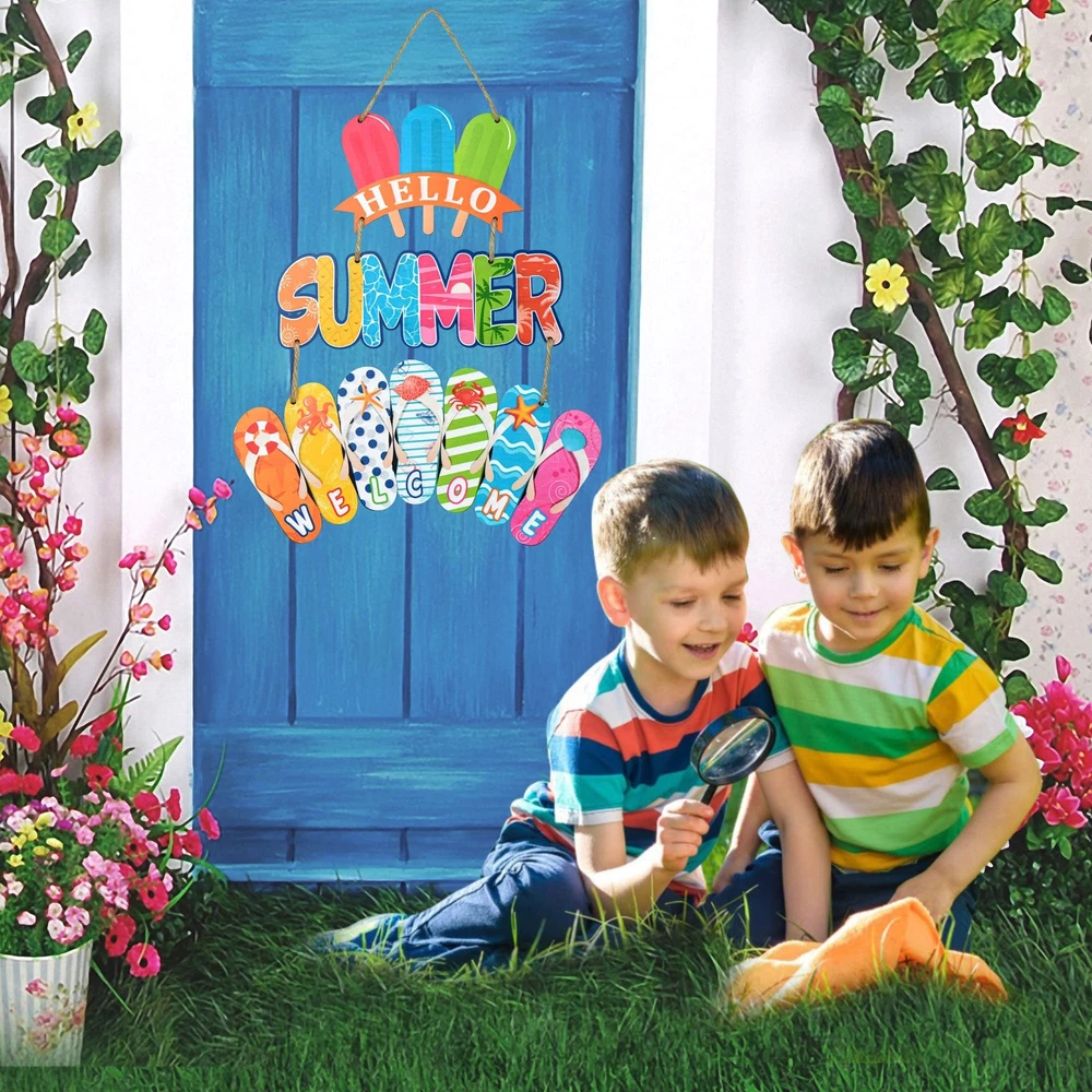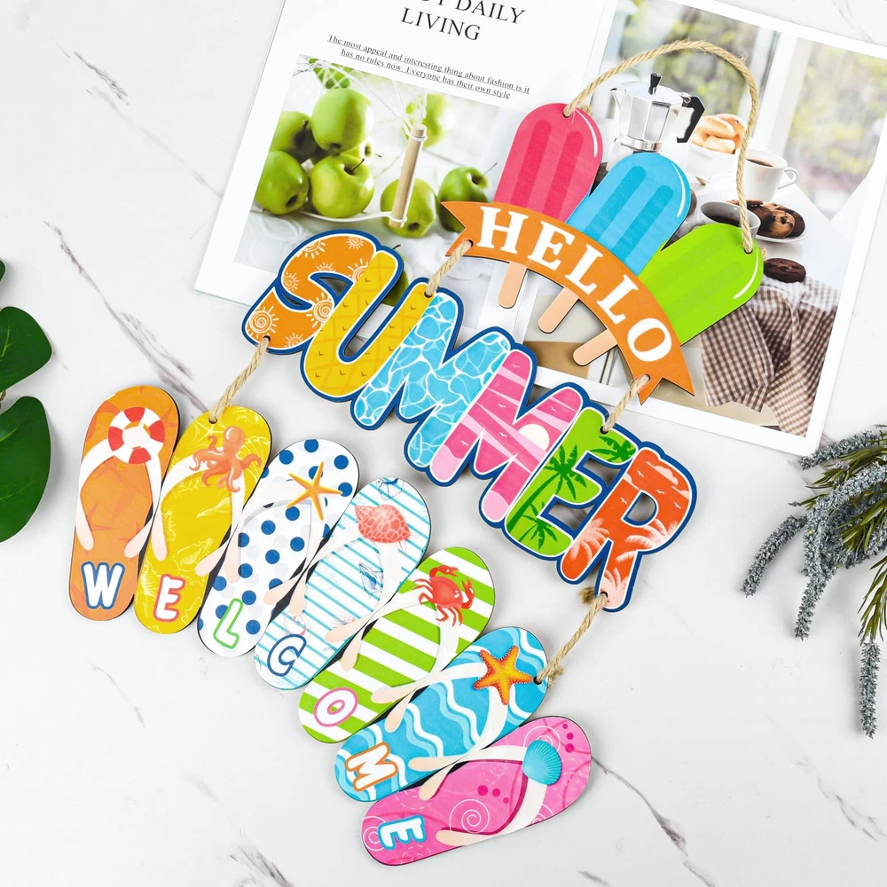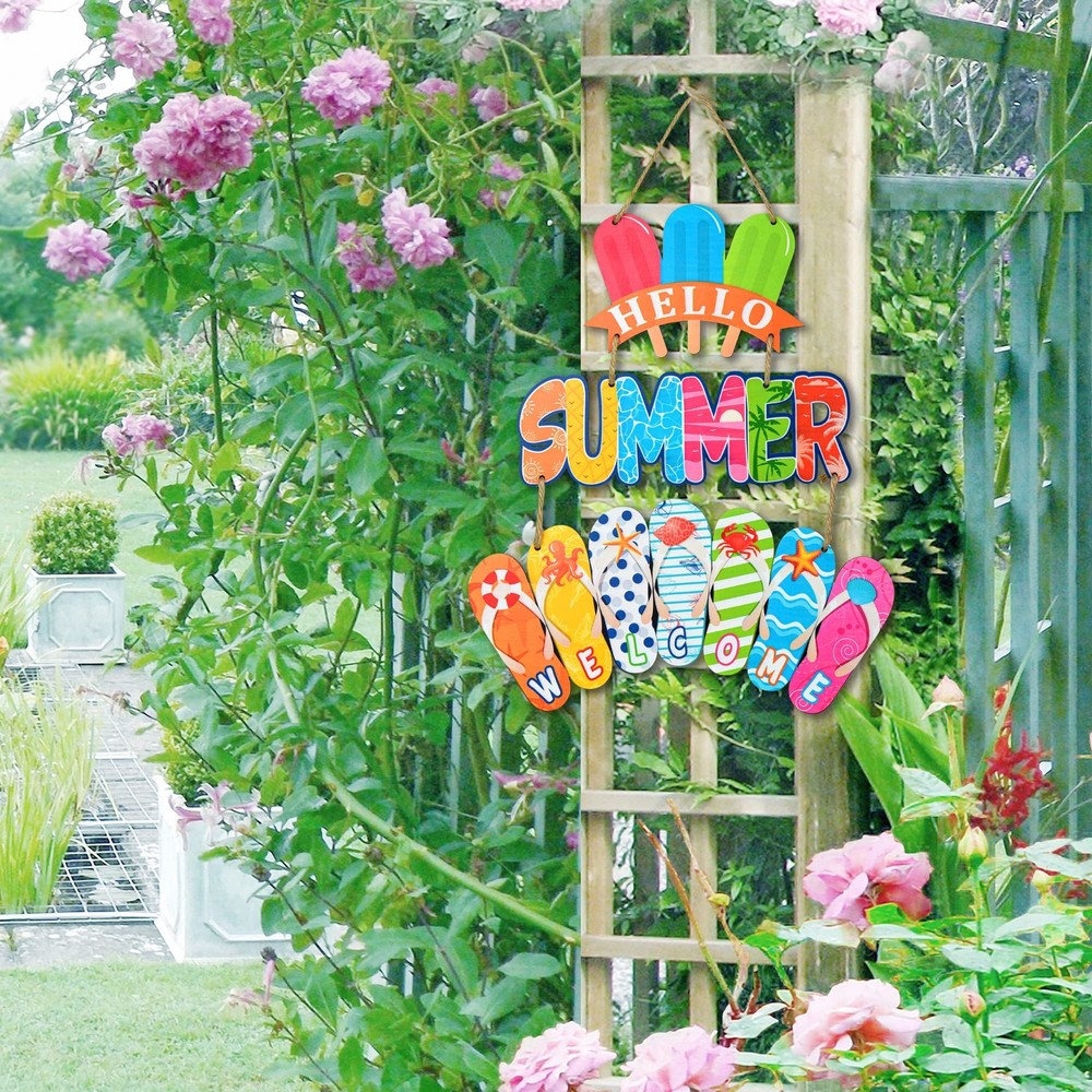 Stylish appearance attracts people's attention. Superb quality extends service life. Perfect addition to your space. Feel free to decorate your summer home party . Package includes: 1x Hello summer door sign Material:wood Size: measuring 25 x15 inches Color:as picture shown NOTES: 1.Manual measurement, please allow slight errors on size. 2.The color may exist a slight difference due to different screen displays. Three Part Wreath:summer decorations for home consist of three parts of summer ornaments. The first part is three colorful ice cream. The second part is wooden “SUMMER” sign cut-out embellished with Hawaiian style. The third one is wooden plate of summer beach slippers with a word called “WELOCME” Fine workmanship: summer welcome sign is made of wood, equipped with precision UV printing, waterproof and durable, suitable for indoor and outdoor use Charming Appearance: Combining bright colors and vibrant pieces, this farmhouse summer decor uses rich elements of beach slippers, shells,crab,waves, swimming ring, and more. Decorate the front door, entry wall or the wall outside for a charming summer day Delightful Sign: this summer welcome wooden sign is designed with a strong summer beach atmosphere.Bringing the feeling of cool summer,just to welcome the arrival of summer and enjoy the sun Summer Gifts: Summer came quietly. It's time to dress up your door. This welcome door sign will be a great addition to a hawaii theme party. Perfect for a summer gift to your parents, friends, teachers, colleagues to show your warmth