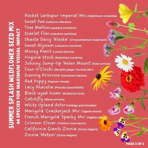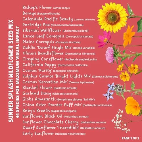 Return Policy Fast Delivery Trusted seller Summer Splash Wildflower Seed Mix (1/2 lb) — Exclusive & Colorful Mix for Beginners and Experts Alike, Non-GMO, Pollinator-Friendly, Easy-to-Grow Product Description Great for Beginners & Experts Alike: Been gardening for years or just getting started? Our wildflower seed mixes are low maintenance and require minimal watering, saving you time and money. Easy To Grow: With 44 wildflowers, your garden or meadow will be buzzing with life. Our most popular and colorful mix is packed with quick-blooming annuals for vibrant first season color and perennials to enjoy in the years to come. Pollinator-Friendly: Attract butterflies, bees, and birds, providing natural nectar and habitat for these creatures and more. Enhance your yard with beautiful blooms and help the environment! Premium Seed Mixture: All seed from is 100% pure, non-GMO, and pesticide free. Our mixes are carefully crafted, lab-tested for germination, and d to grow. Seeds included in this mix are listed in the Product Description. Environmentally Friendly: Packaging made in the USA from post-consumer recycled water bottles. All packaging is resealable and waterproof. Shipping Returns Payment Shipping Shipping is FREE to all addresses other than APO/PO boxes in the lower 48 states. All our stock ships from US-based warehouses. Shipped via USPS or UPS (depending on location and package weight) Unless stated otherwise, all orders will ship within 24-72 hours of your payment being processed. Check our feedback to see the great reviews of FAST shipping we offer. Returns Seller does not accept returns Payment We currently accept payment via eBay managed payments only. Once payment is cleared, we will dispatch your shipment within 1-3 business days. Please refer to the "Shipping" tab for more information regarding shipping speed to your destination.