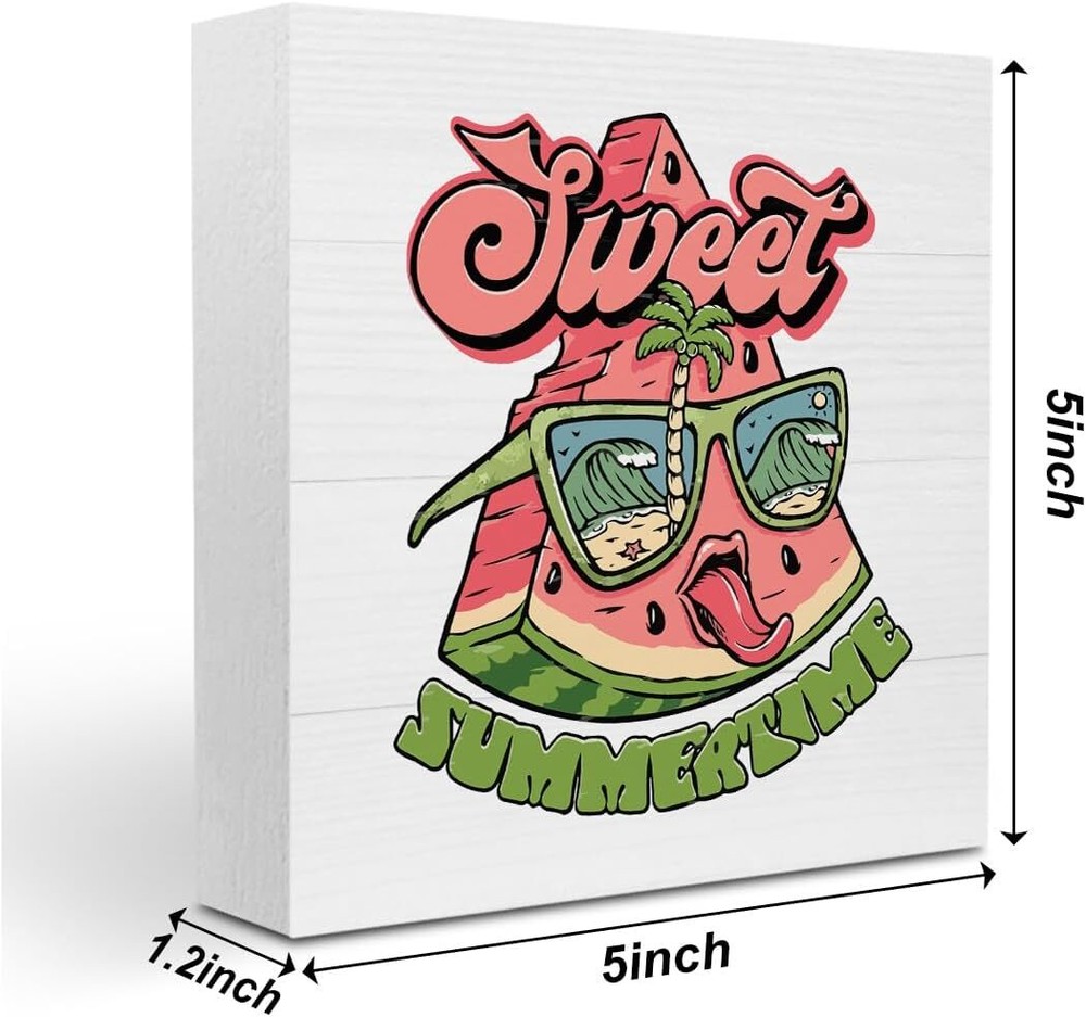 5 x 5 inch Real Wood Wooden Box Sign Core Parameters Material: High quality real wood Size: 5 x 5 inch (12.7 x 12.7 cm) Technical Specifications • Perfect Size - About 5 x 5 inch. Takes up little space for desks decor and shelves cubicle decoration. • Premium Material - Made of strong, durable real wood, not easy to fade. • Summer Decorations - Decorated with humor quotes and funny spring/summer themes. • Funny Summer Decor - Can stand up on its own for various decorative uses. • Funny Summer Gifts - Adorable gift for various occasions and recipients. Package Information Package Dimensions: Not specified