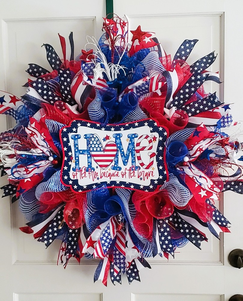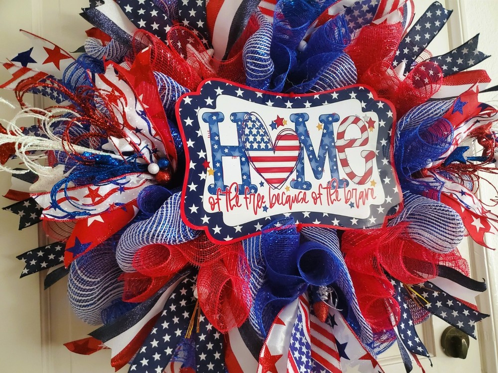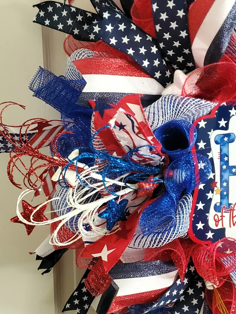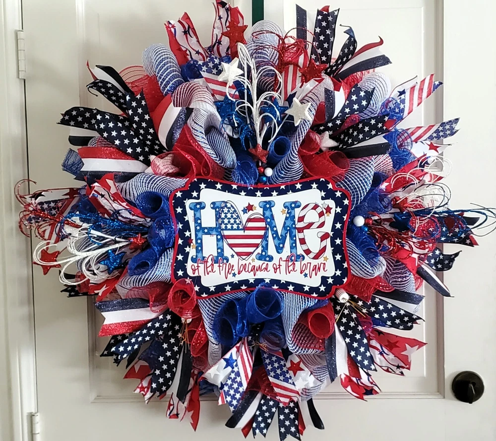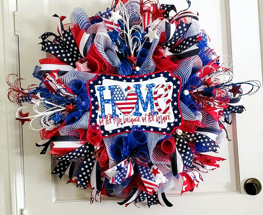Crafted with care, this Handmade Summer Wreath is a vibrant addition to any doorstep, enhancing your home's décor with a touch of patriotic flair. The wreath, featuring a palette of blue, is made from durable fabric, ensuring it holds its shape and color through the seasons. It's designed as an artificial wreath, requiring no maintenance, which makes it an ideal choice for those who appreciate the look of a lush, full wreath without the hassle of watering or upkeep. Perfect for occasions like the 4th of July or as a festive Labor Day greeting, it's a versatile door decoration that celebrates the spirit of summer and the pride of the nation.