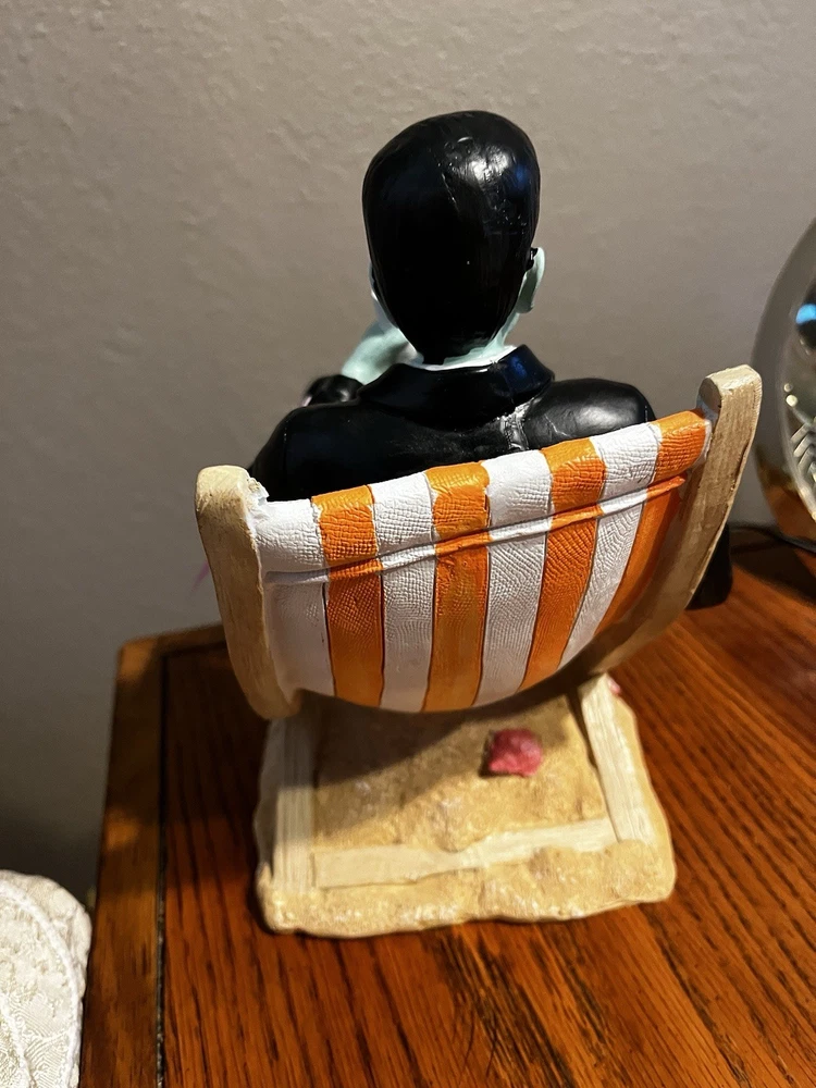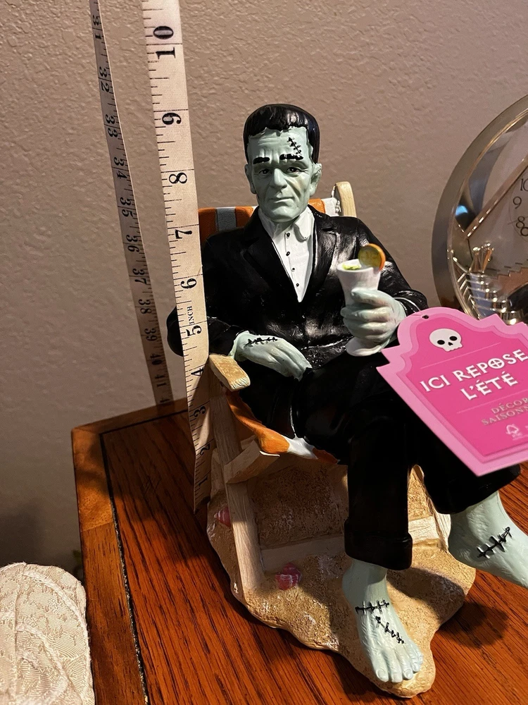 Summerween Frankenstein Beach Statue Lounging with Drink