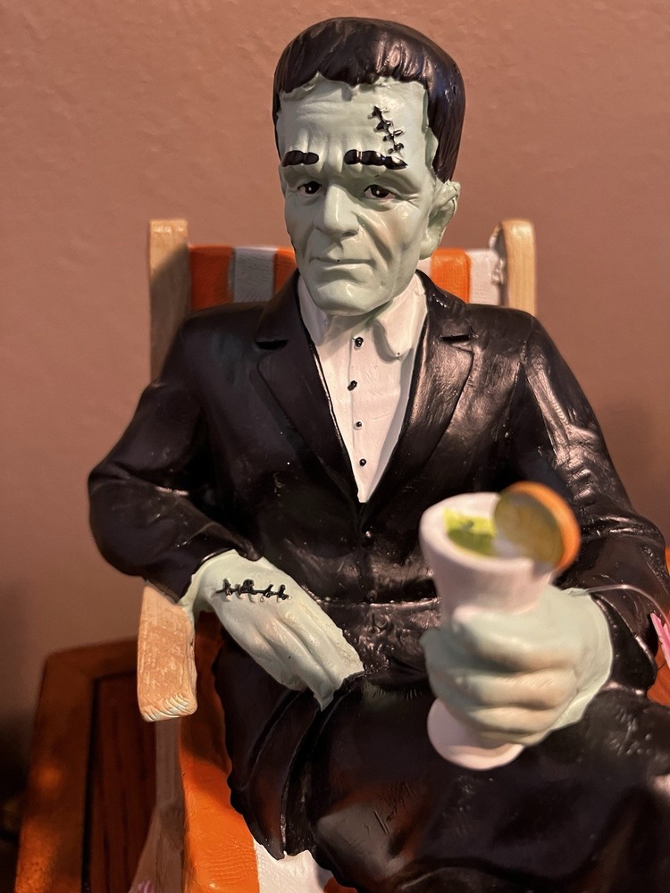 Perfect to add to your monster decor . Summerween , summer Halloween decor. Frankenstein monster, and a chair with this cocktail by the pool. .