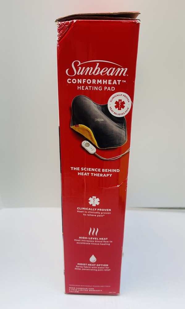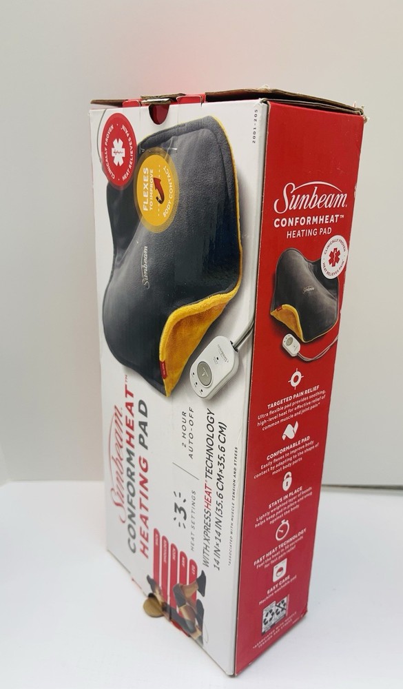 Sunbeam Conformheat Heating Pad 14IN X 14IN. 3 heat settings. 2 hour auto - off 14 IN X 14 IN Invnt brrnr2mqty