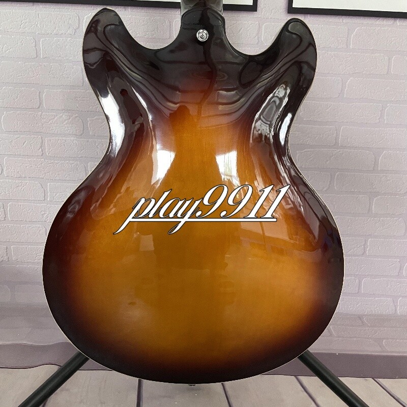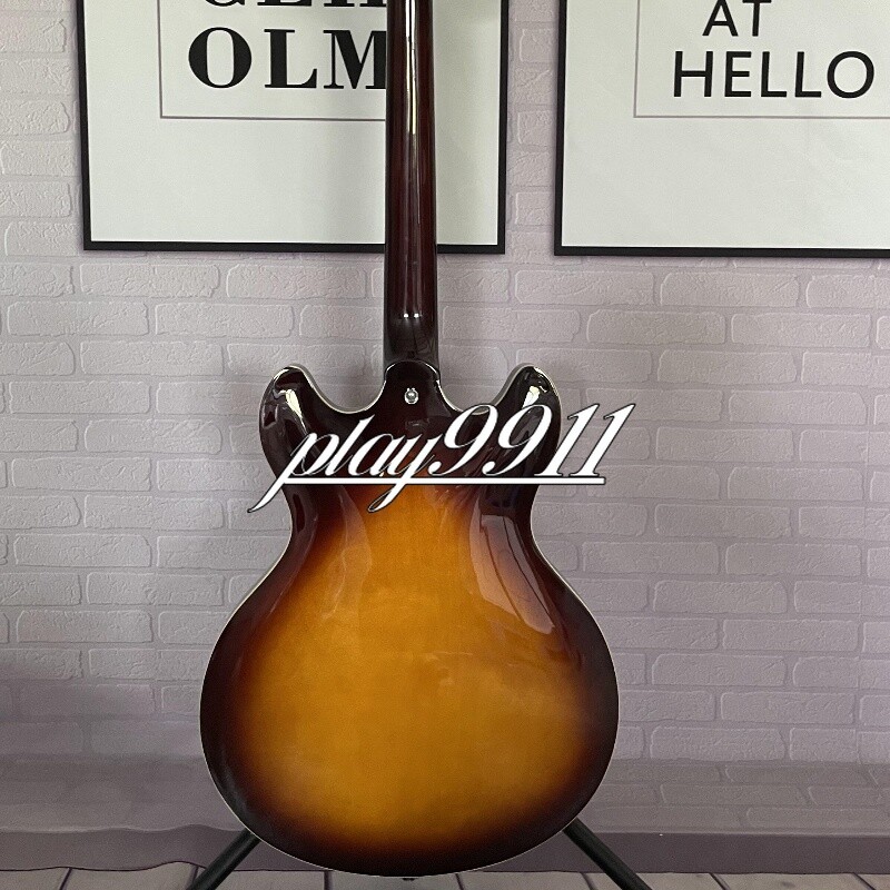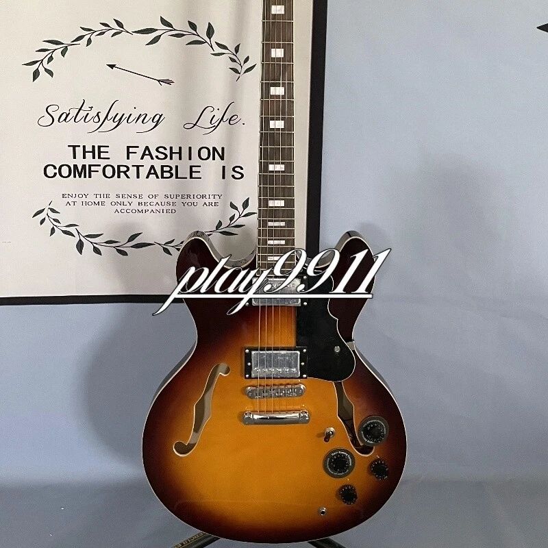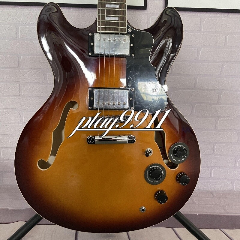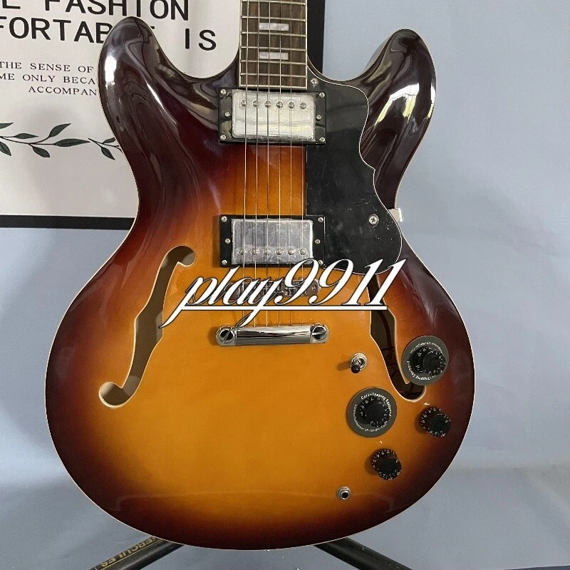 Sunburst Semi-hollow F-hole Electric Guitar Chrome Hardware HH Pickups Factory Product Details: Every guitar is made with painstaking effort, we design and manufacture with our hearts, so that every guitar is unique. Other details are as follows: Body: Mahogany Neck: Mahogany Fingerboard: Rosewood Pickup Switch:3-ways Joint:Bolt on Company Profile Our company is located in Weifang,China,specializing in producing various kinds of guitar and its accessories. Currently we produce over 200 different models of electric and acoustic guitars! We combine hand craftsmanship, with modern design techniques, to create quality, comfortable feeling, excellent sounding instruments! That not only look fabulous, but are extremely playable and the quality truly extends above the price tag. Quality Guarantee All of our products must pass a detailed inspection and quality control check before leaving our facilities. This ensures that our products will meet the global standards for instruments, that have been set over many decades. Note: Remember we make these guitars by hand. And we don't just make one. Things like wood grain, texture, and color, may differ slightly than the one pictured. We do many custom builds so please contact us today with those ideas on that next one of a kind guitar. Since we are the manufacturer we are also able to offer you WHOLESALE pricing, with extreme consistency in product. Delivery Time Once payment has been confirmed, your item will be shipped within 3 business working days.Our Products do ship from China via EMS and will generally take 15 to 25 days to arrive at address in: The United States, Canada, Australia, and Europe. However it may take up to 60 days to ship to countries that do not use EMS. The speed also base on Custom Clearance Speed, which we can't control .So if you want this for your gig next weekend it probably wont make it on time, so please keep that in mind when ordering. We package very carefully but can highly recommend shipping your new baby in a protective soft or hard case. Return Policy Please contact us within 3 days of receiving your damaged or defective item and we can start the exchange/return/refund process. If there is a delay in handling time we will let you know. Please make sure your shipping address is current and updated. Note: - Keep the defective product exactly as it arrived , including packaging. Do not remove any parts or write on the instrument - Please Re-pack item exactly as it was packaged whether it be single or double boxed. Kindly avoid using Duct Tape - Please use a package carrier that allows you to insure and track their packages. Such as: FedEX - UPS - USPS. Customer service All emails will try to be answered within 24 hours. We do receive a lot of emails and sometimes they get lost so, If you do not receive a reply within a few business days, please kindly re-send your email and we will reply back you as soon as possible. However we have 100% satisfaction guarantee. So don't worry we have your back! Please contact us first, our customer service representatives are here to assist you.