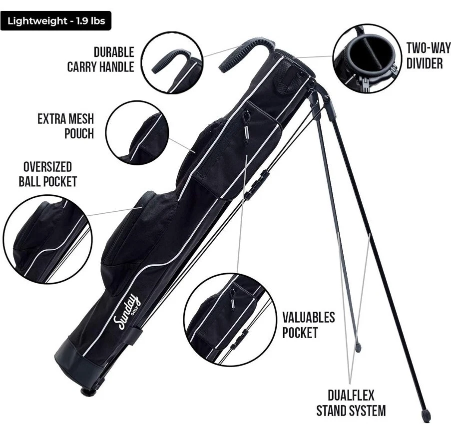 Sunday Golf - Lightweight Sunday Golf Bag with Strap and Stand Includes 2 ball sleves and a pack od SD Padres plastic tees