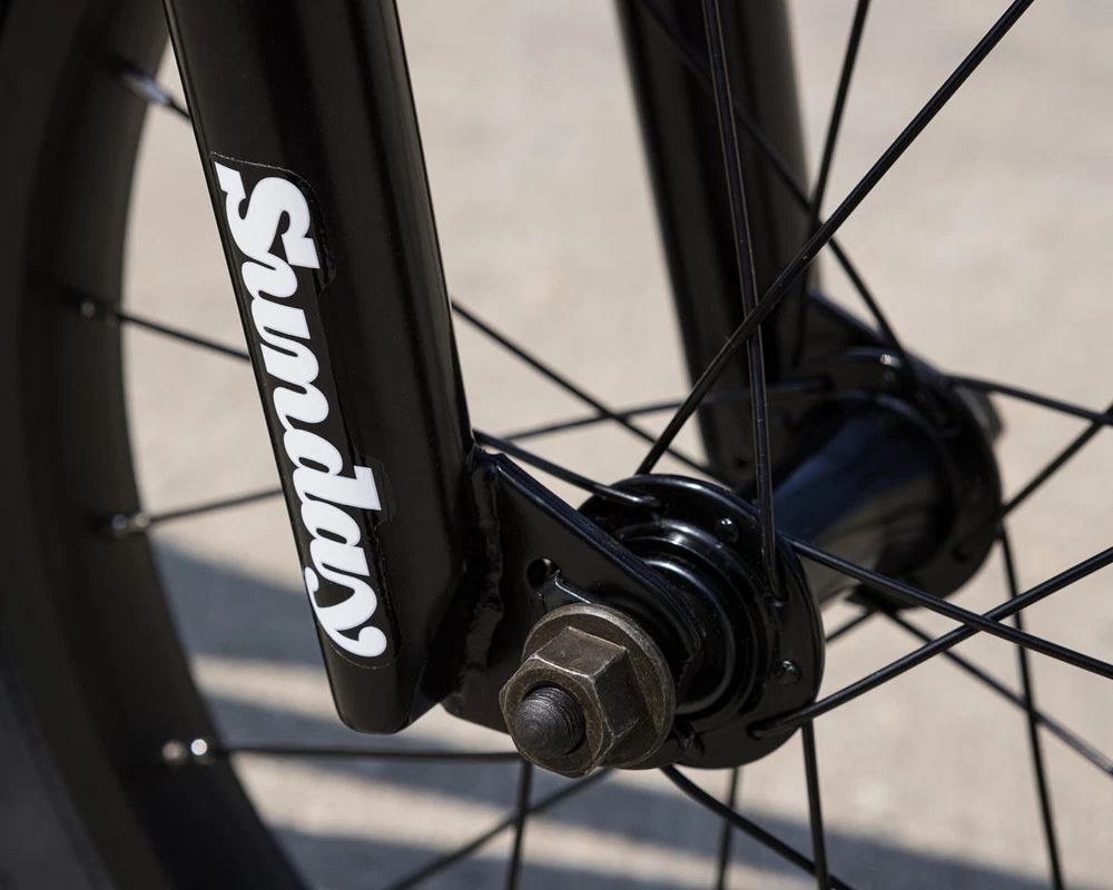 Sunday Primer 16" BMX Bike Description: The Sunday Primer 16" BMX Bike is built to get little shredders going big! The Primer 16" bike features everything you need to keep the bike smooth and durable; sealed cassette rear hub, 3-piece chromoly cranks, sealed bottom bracket bearings, and beefy 2.1" Sunday Current tires. This bike is designed as a pro-level freestyle bike for young rippers to advance their skills. Specifications: Frame: Sunday Primer, High-Tensile Steel, Integrated Headtube Fork: Sunday Primer, High-Tensile Steel, 2-Piece Steerer Tube, Welded Preload Headset: FSA Integrated (1-1/8") Stem: Top Load, Aluminum (40mm) Bars: Sunday, High-Tensile Steel, 2-Piece (23" Width) (6.75" Rise) (12° Backsweep) (1° Upsweep) Grips: Velo Junior Cranks: 3-Piece, Chromoly (127mm Length) Bottom Bracket: Sealed Mid (19mm) Pedals: Wellgo Junior Platform, Plastic Sprocket: Sunday Sabertooth V2, Steel (25 Tooth) Chain: KMC S1 Front Hub: Sunday Low-Flange, Unsealed (3/8" Axle) Rear Hub: Sunday Sealed Cassette (14mm Axle) Driver: 10 Tooth Front Rim: P-7X, Aluminum (16") (20 Hole) Rear Rim: P-7X, Aluminum (16") (20 Hole) Front Tire: Sunday Current (16 x 2.1") Rear Tire: Sunday Current (16 x 2.1") Seat: Sunday Badge (Combo) Seat Post: Combo (25.4mm) Seat Clamp: Sunday Brake Lever: Aluminum (U-Brake Compatible) Brakes: Odyssey Springfield U-Brake Gyro: - Gyro Tabs: Drilled (Not Included) Brake Mounts: Welded Extras: - Color: Turquoise Weight: 23.3 lbs Geometry: Toptube Length: 16.5" Chainstay Length: 10.6" - 10.85" Headtube Angle: 74.5° Seattube Angle: 71° Bottom Bracket Height: 9.25" Standover: 6.9" Recommended Sizing Guide: 3' 2" - 4' Rider Height Note: To ensure that every component on your bicycle is working properly, we recommend that all bikes be assembled by a qualified mechanic. Improper assembly of your bicycle may lead to premature wear or failure of individual components such as headsets, crank assembly and wheels. Failure to do so may void the manufacturer warranty. About Us | View Store