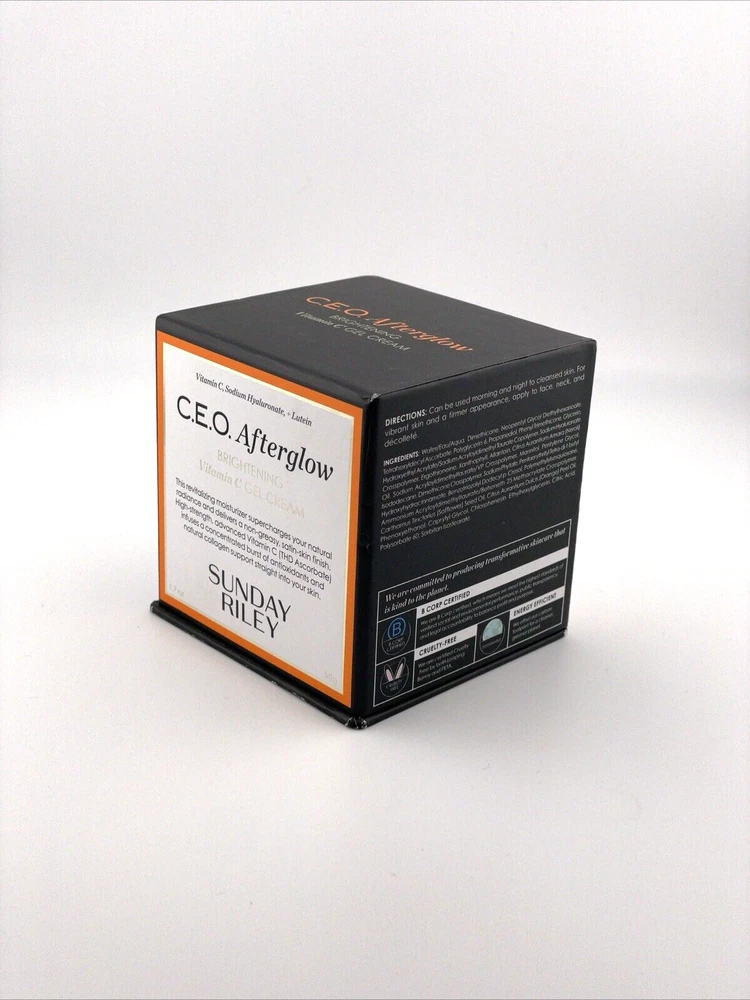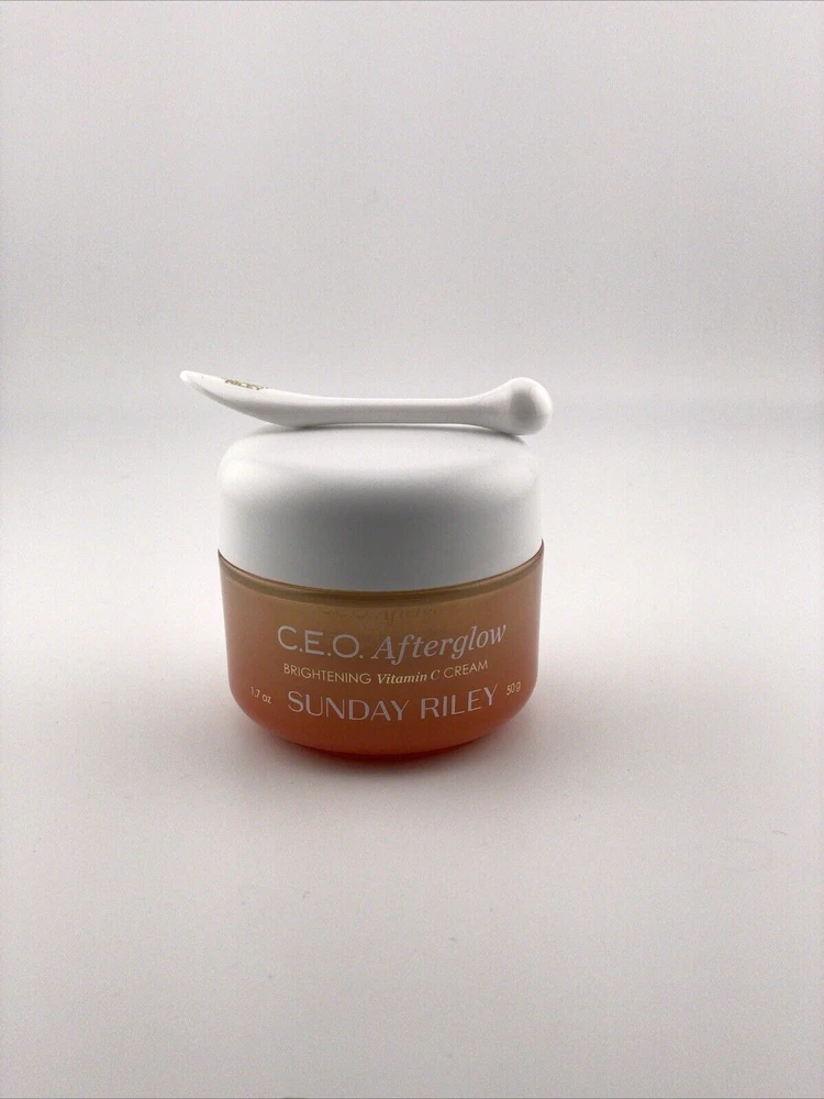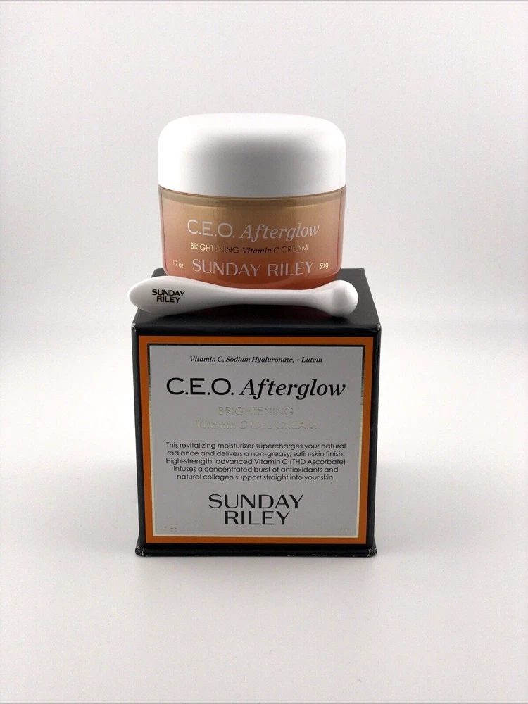 Sunday Riley CEO Afterglow Brightening Vitamin C Gel Cream - 1.7 oz / 50g (NEW) Condition : Brand New, Sealed. Achieve a radiant glow with the Sunday Riley CEO Afterglow Brightening Vitamin C Gel Cream . This lightweight, antioxidant-rich moisturizer is infused with a high-potency Vitamin C complex, designed to brighten, hydrate, and rejuvenate your skin for a luminous, healthy-looking complexion. Key Features : Vitamin C-Powered : Boosts radiance and fights dullness with a stabilized, oil-soluble form of Vitamin C (THD Ascorbate) that penetrates deeply into the skin for long-lasting results. Brightening & Hydrating : Instantly revitalizes tired, dry skin while evening out skin tone and reducing the appearance of dark spots and discoloration. Gel-Cream Texture : Lightweight, non-greasy formula that absorbs quickly, making it perfect for all skin types, including oily and combination skin. Moisturizing & Soothing : Enriched with a blend of antioxidants and soothing botanicals that hydrate and calm the skin, leaving it soft and smooth. Daily Use : Suitable for day and night use, ideal as a base for makeup or as part of your skincare routine. Size : 1.7 oz / 50g How to Use : Apply to clean, dry skin in the morning or evening. Massage gently into the skin until fully absorbed. Achieve a brighter, more youthful-looking complexion with the powerful and luxurious Sunday Riley CEO Afterglow Brightening Vitamin C Gel Cream !