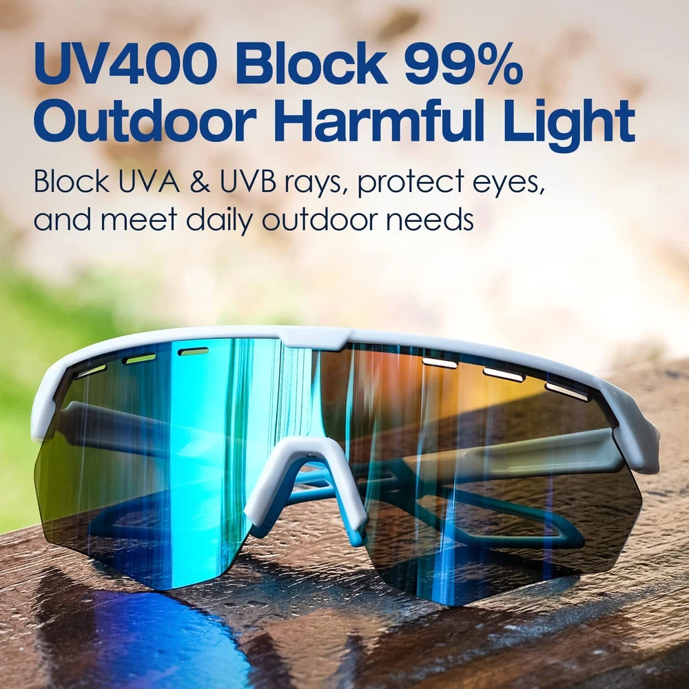 【UV400 SUNGLASSES MEN】- These sunglasses womens block 99% of glare and harmful light (UVA & UVB & UVC). Wearing baseball sunglasses outdoors can prevent eye fatigue and pain, protect eye health, and also make the vision clearer. The hole on the lens facilitates air circulation and the lens is not easy to fog up 【A+ GRADE LENS】- These mens sunglasses use premium security materials as lenses, and 9-layer lens design can effectively block harmful light. Professional cycling glasses protect eyes when doing sports, and wrap around sunglasses protect against wind and dust when riding 【OUTDOOR SPORTS SUNGLASSES】- Ideal baseball glasses for cycling, baseball, fishing, running, and driving. sunglasses can meet your multiple sports needs. Ultra-lightweight frame allows you to exercise without any burden 【PRODUCT DIMENSION】- Lens Width: 136mm(5.25in), Lens height: 58mm(2.28in), Arm Length: 138mm(5.43in), Bridge: 22mm(0.87in) 【LIFETIME WARRANTY】- You don't have to worry about how long these fishing sunglasses can be used, they are durable enough. 100% Risk Free Shopping. If you have any questions about the sport sunglasses, please feel free to contact us