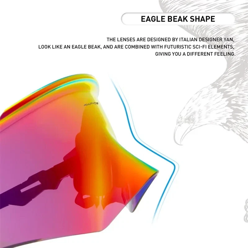 Feature: 【 Polycarbonate Lenses 】 KAPVOE cycling glasses are made of high-grade polycarbonate that have UV400 protection, can effectively block harmful UVA & UVB rays, are safe, durable, and impact-resistant, protect your eyes from sand, heavy wind, and strong sunlight. 【 Lightweight TR90 Frame 】 These MTB glasses are made of ultra-light TR90 frames and can be flexible to fit most face shapes. Equipped with rubber ear pads on legs and only about 30g, let you feel unburdened even after a long time of wearing. 【 Eagle Beak Shape 】 The lenses of the sports sunglasses are designed by Italian designer Yan, look like an eagle beak , and are combined with futuristic sci-fi elements, stylish and handsome design makes you different from the crowd. Large lenses take the oblique cutting process with an integrated curved design, which can not only provide a wider field of view but also reduce air resistance for running or cycling. 【 2 Interchangeable Nose Pads 】 For different heights of nose bridges, we have prepared 2 different sizes of soft nose pads in the Riding glasses package. You can choose one suitable to wear. 【 Multifunctional Sunglasses 】 These bike glasses are perfect for running, golf, hiking, fishing, cycling, MTB, BMX, riding a motorcycle, driving, skiing, baseball, mountain climbing, golf, boating, and other outdoor activities.