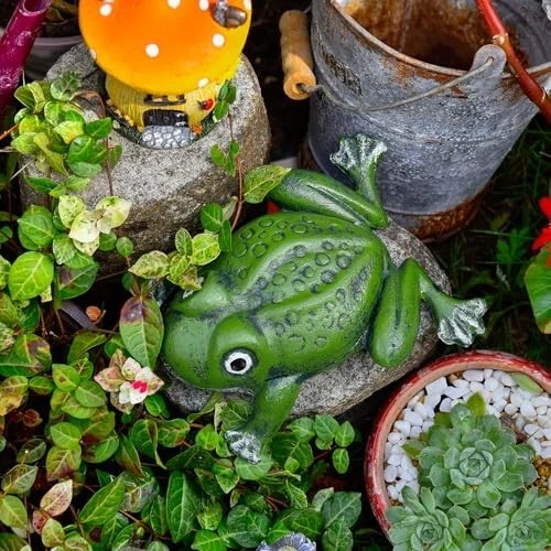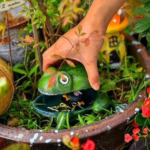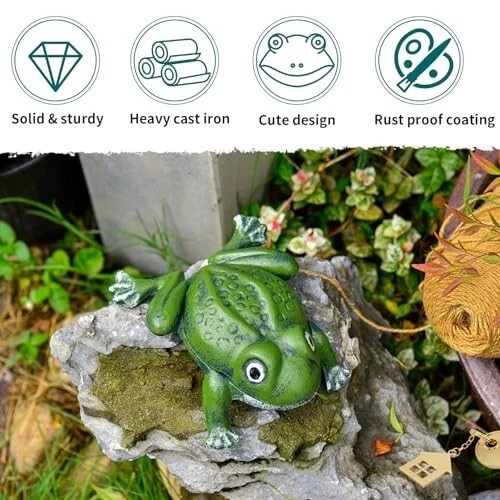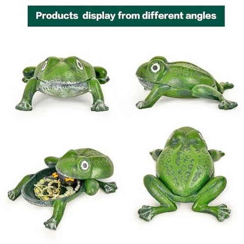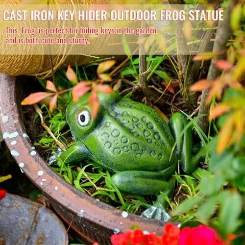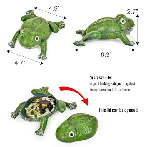 Material: Crafted from sturdy, very sturdy and durable. It’s heavy enough to stay put if windy. Decorative Statue: This is a fun yard/garden ornament, can easily blend in with your landscaping, perfect for garden or flower bed decor. Cute Design: This metal frog-shaped key hider is a ribbit-ing addition to any doorstep. Would look good on a bookshelf, garden, patio, bathroom. Spare Key Hider: Attractive frog hidden key holder for outside, also used as a bedside pill box or an incense cone burner, holding jewelry or something small items. Size: 6.3*5.1*2.5 inches; Maintenance: Spray it with a clear acrylic finish before using it, or coated with a layer oil.