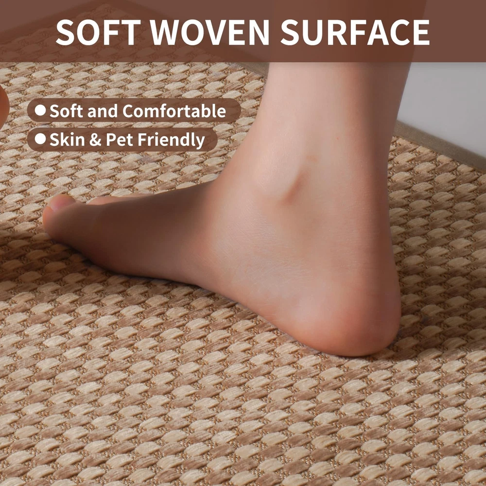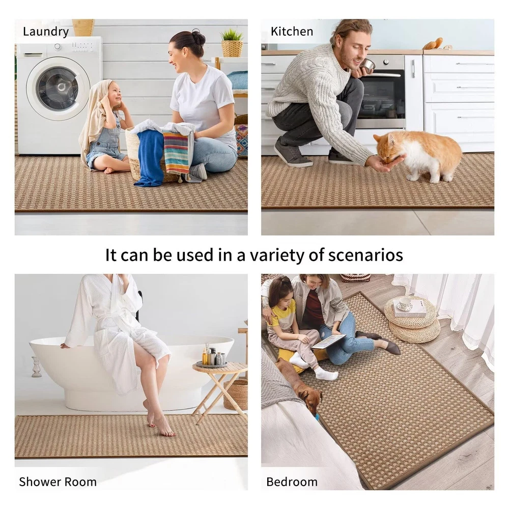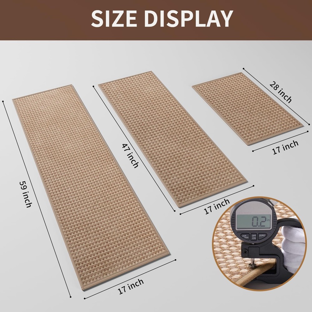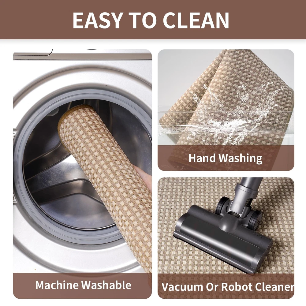 Kitchen Mats For Floor, Super Absorbent Kitchen Rugs Non Slip Washable, Rubber Backing Soft Chenille Braided Kitchen Runner Rug, Standing Mat Kitchen Sink Mat, Easy To Clean, Brown 17"x28" Super Non-slip: The non-slip rubber backing can increase slip resistance, and its grip effect allow you standing firmly on the kitchen mat without slipping. Our kitchen rugs nonslip can provide security for your family. It can be applied on hardwood floors, tiles, linoleum, and other smooth surface without any concern. Ultra Oil and Water Absorption: Our kitchen mats can quickly absorb when oil and water drop on the rug, which can clean oil stains during cooking,which can protect floors from oil, moisture, sauces or food crumbs. Our kitchen mats for floor can keep your sole and kitchen floors clean and dry. Soft And Comfortable Weaved Surface: kitchen mats feature a soft chenille woven surface that is thick and delicate, and will feel cozy and soft when you step on it. Our rubberized chenille woven kitchen mats provide comfort for your feet and let you enjoy your cooking time. Long term use-Last 3-5years: kitchen rug runner has premium density weave surface,so you don't worry about your pet scratching it.And it won't be damaged when you step on it for a long time. High-quality kitchen mats for floor anti fatigue are durable and can be cleaned repeatedly. Easy to Clean and Protect the Floor: You can rinse it ,and also can clean it by washing machines and vacuum cleaners without waste of long time.Our kitchen rugs washable own thickened encrypted woven surface that can be durable and washed repeatedly without damage.