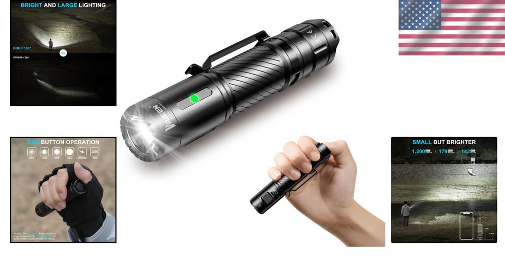 Super Bright 1200 Lumens LED Flashlight with 6 Modes - Compact Tactical Design ‹ › ‹ › ‹ › ‹ › ‹ › ‹ › ‹ › ‹ › ‹ › ‹ › ‹ › Super Bright 1200 Lumens LED Flashlight Compact Tactical Design with 6 Modes Features: Utilizes Germany imported P9 LED for exceptional brightness up to 1200 lumens. Light reaches nearly 588 ft, ideal for various activities. Offers 6 adaptable light modes: High, Medium, Low, Eco, Strobe, and OS (With memory function). Eco mode lasts an incredible 143 hours, perfect for prolonged use. High transmittance TIR lens with a light transmittance of 92-93%. Unique lamp head design allows easy identification of the flashlight's state. Smart Charging & Indicators: Features built-in TYPE-C rechargeable port for convenience. Anti-reverse installation protects circuit quality and ensures safety during operation. Indicator light monitors battery status—flashing red when below 15%; blue when fully charged. Durable & Reliable: Constructed from hard anodizing aircraft-grade 6063 aluminum alloy. IP68 water resistance and 1.5-meter impact resistance for rugged outdoor conditions. The Perfect Everyday Carry Companion: Compact size of 4.78 inches and lightweight at 4.34 oz for easy portability. Pocket clip and lanyard provide versatile carrying options. Optional flashlight holster available for additional carrying flexibility. Why Choose Our Super Bright Flashlight? Elevate your outdoor adventures and daily tasks with the Super Bright 1200 Lumens LED Flashlight. Whether you're navigating through nature or preparing for an emergency, this flashlight combines cutting-edge technology with outstanding durability. Its impressive brightness, flexible modes, and robust construction make it an essential accessory for any situation. Don't compromise on safety and reliability—choose the flashlight that shines above the rest. Order yours today and light the way to endless possibilities! Shipping Free & Fast Shipping - We offer free shipping to most of the USA with a normal delivery time of 3-7 days. However, due to the current situation, additional delivery time (up to 3 weeks) may be required for some items. Alternative Carriers - We may use alternative carriers (e.g. USPS, FedEx, UPS, etc.) to ensure your package arrives safely and on time. Due to the use of multiple carriers, we are unable to provide a tracking number automatically. Handling Time - Orders are processed and shipped within 1-2 business days of receiving cleared payment. Shipping Restrictions - Shipping to Alaska, Hawaii, Puerto Rico, Guam, and other US territories may incur shipping charges or delivery restrictions. Please contact us before ordering, or your order can be refunded/cancelled. State Restrictions - There may be restrictions based on your state of purchase. For example, certain items may not be shipped to California due to state regulations. Contact for Tracking Updates - If you require tracking updates or have any concerns about the delivery of your order, please feel free to contact us, and we will be happy to assist you. Return 30-Day Hassle-Free Returns - We want you to be completely satisfied with your purchase. If you are not, you can return the item within 30 days of receiving it for a full refund or exchange. Easy Return Process - To start a return, simply contact us and we will provide you with a prepaid return shipping label and detailed instructions. Restocking Fee - There are no restocking fees for returns. However, the buyer is responsible for return shipping costs if the return is not due to a seller's error. Refund Processing Time - Refunds will be processed within 5 business days of receiving the returned item in its original condition. Payment We accept all major credit cards, PayPal, and Apple Pay for your convenience. Your payment information is secure and encrypted to ensure a safe and seamless transaction. Please complete your payment within 3 days of purchase to avoid any delays in shipping. Feedback Your feedback is extremely important to us. We strive to provide the best products and customer service possible. If you are satisfied with your purchase, please take a moment to leave us a positive review. If you have any concerns or issues with your order, please contact us before leaving negative feedback. We are committed to resolving any problems and ensuring your satisfaction. Contact Us If you have any questions or concerns, please feel free to reach out to our customer support team. You can contact us through the eBay messaging system. We are available Monday to Friday, 9:00 am to 5:00 pm EST, and we will do our best to respond to your inquiry within 24 hours. Buy it now and enjoy a pleasant shopping experience! UPC: Not Set Voltage: 3.7 volts Item Height: Rechargeable Tactical Flashlight Item Length: Rechargeable Tactical Flashlight Item Weight: 123 grams Item Width: Not Set Model: Not Set Lumens: 1200 Number of LEDs: 1 Unit Quantity: 1 Material: Aluminum,6063 aluminum alloy Features: Rechargeable,Tail Switch,With Pocket Clip,With Lanyard,Portable,Easy to Carry,Mode Memory Function Brand: Unbranded Type: Flashlight Lighting Technology: LED Power Source: Battery Operating Range: 588 ft MPN: Not Set Number of Batteries: 1 Battery Technology: AAA Color: C3 Country/Region of Manufacture: Not Set Operating Time: 143 hours IP Rating: IP68 Number of Lights: 1-3 Unit Type: oz Personalize: Not Set