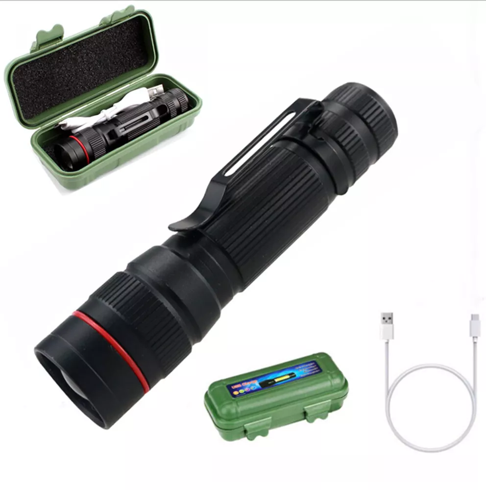 Specifications 1.Material: Aluminum alloy 2.Switch: Press switch 3.Zoom: zoom in & zoom out 4.Battery: Built- in battery (Include) 5.Switch modes: 3 modes: Bright-Dim-Flashing 6.Charging mode: USB charging 7.Colour: black Water Resistant design, but don't deep it into water. Package Included: 2x Flashlight 2x USB Cable 2x Gift Box LED Flashlight LED Flashlight Features 1.Three lighting modes for free switch as desire with simple pressing button operation. 2.Built-in mini rechargeable battery with USB charging cable to provide continuous illumination. 3.mini flashlight with high brightness, suitable for cycling, hiking, camping and other outdoor activities. Specifications 1.Material: Aluminum alloy 2.Switch: Press switch 3.Zoom: zoom in & zoom out 4.Battery: Built- in battery (Include) 5.Switch modes: 3 modes: Bright-Dim-Flashing 6.Charging mode: USB charging 7.Colour: black Water Resistant design, but don't deep it into water. Package Included: 2x Flashlight 2x USB Cable 2x Gift Box Payment Delivery details Terms of sales About us Contact us Payment We accepct payment via all methods. Delivery details Your order will be dispatched within 1-3 working day of receive payment. Terms of sales You can return the product to get a refund or a replacment within 60 days of purchase. The item returned should be in their origainal status. About us If you are highly approve our products and service, please leave us a 5-star positive feedback. And recommand our ebay store to your relative and fiends. Contact us Please feel free to contact us if you have any questions for the item and order. Thanks.