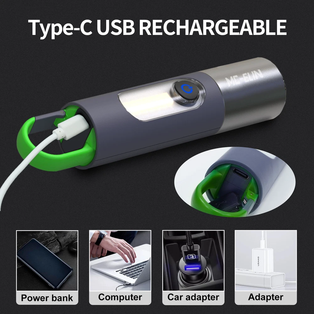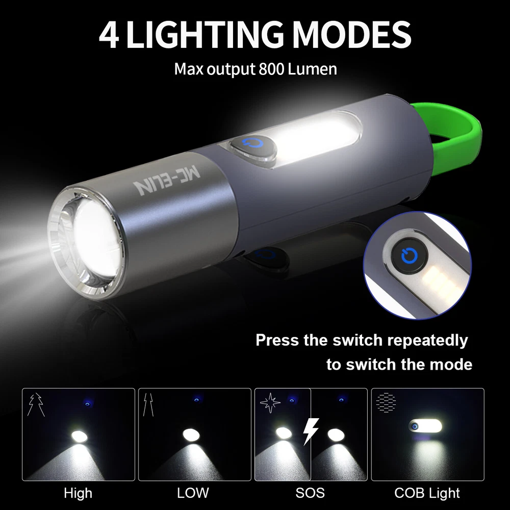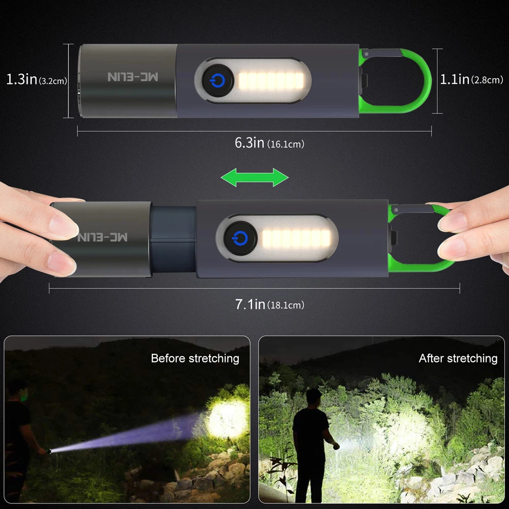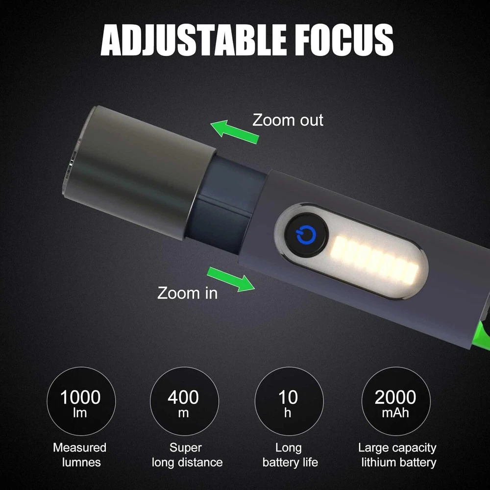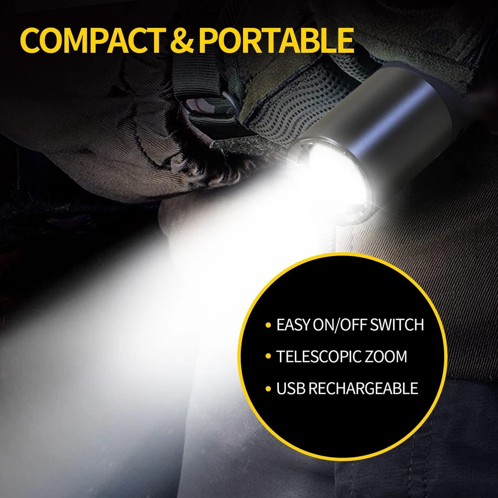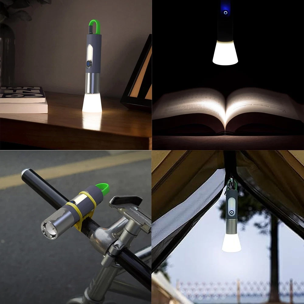 Super Bright LED Flashlight USB Rechargeable Camping Lantern Zoom Side Light BRIGHT & ZOOMABLE- The camping latern flashlight easily lights up an entire room or tent and its narrow beam makes it the perfect all-around flash light for everyday use and outdoor activities 4 MODES & DIFFUSER- Click the power button to switch between four brightness levels (low/medium/high/side light) With the diffuser, the light will be evenly softened and can be used as signal light and ambient light. COMPACT & TAIL HOOK PORTABLE- Easily fit this small flashlight in your pocket, backpack,for easy storage and quick access.Ideal for use around the house, dog walking, or camping. The push-type multifunctional spring hook is easy to carry and suitable for multiple scenes, freeing your hands. FREE BICYCLE SILICONE TIE RIBBON- These work very well for quick add-ons to the handlebars or down tube;With the flashlights the ones that screw tight break easy this is a better option. They hold cellphones, speakers, lights, well anything really. Great investment. It holds the flshlights securely whenever you are driving your bicycle on the dark night and only your flash light serves as your guide. You can use them to attach objects of various sizes and shapes to your bike! SIZE - Measuring 6.3 x 1.18 x 1.18 inches,3.5 oz,these small flashlights are outdoor, camping and hiking. They also work great as an everyday emergency light. INCLUDED- This high lumen flashlight includes (1) LED Flashlight USB Rechargeable, (1) Type C USB Cable, (1) Flashlight Bike Mount Silicone Strap Rubber Tie (1) Flashlight Diffuser.If you have any questions about this Camping Flashlight , please feel free to contact us by sending email, we would like to reply in 24 hours. If there is any product quality problem, we would like to provide full refund or resend you a new flashlight for replacement. Personalization Instructions: Super Bright :100% new Mini 500 lumen led Flashlight. Zoomable and portable flashlight, downsized for highest bright intensity. Enlarge to increase lighting area. Different usage modes: High/low/stroboscopic (for riding), always start high. Equipped with side lights and soft light, so that you can protect your eyes while car repair or reading Equipped with bicycle silicone lanyard, make your riding safer Built-in battery will give you more than an hour of brilliant bright light. You don't have to buy expensive batteries Perfect for cycling, camping, hunting and fishing On Jan 21, 2025 at 18:22:29 PST, seller added the following information: