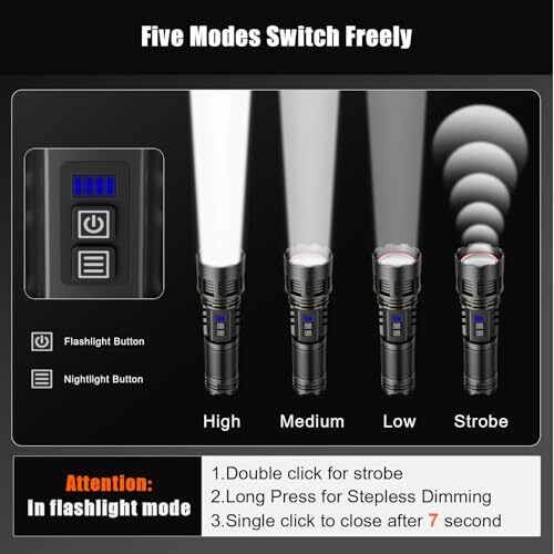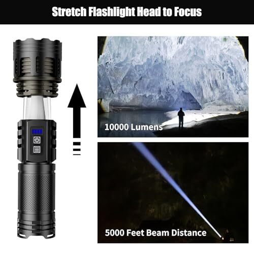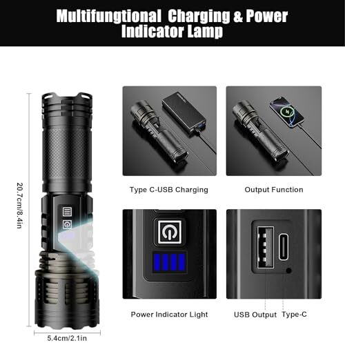 Return Policy Fast Delivery Trusted seller LED Rechargeable Flashlight High Lumens with Ambient Lamp,Super Bright Tactical Flashlights with 2 Colors,Focusable,Waterproof Flash Light for Camping Essentials,Outdoor&Home-Black Product Description Super Bright Focusable Flashlight: LED flashlight delivers 10000 high lumens and a beam distance can reach 5000 feet.its adjustable zoom function by Stretch Head allows you to switch between spotlight and floodlight, perfect for home emergency,camping essentials and outdoor survival.Even in the darkness, everything in your sight is clear Essential Tool for Outdoor Gearhead: Equipped with a 5000mAh lithium battery, Rechargeable flashlight supports Type-C charging and reverse OUTPUT, allowing for long-lasting use(70 hours) while also providing emergency charging for your devices. With our flash light,you can embark on worry-free adventures anytime Multiple Modes to Meet Various Lighting Needs: super bright flashlight offers five versatile lighting modes: High,Medium,Low and Strobe,long press for stepless dimming,providing flexibility for various situations.Easy to Turn Off. Simply stay in any mode for more than 7 seconds, and a single will turn it off, ideal emergency tool for outdoor adventures ?Surprising Camping Lamp: The Rechargeable Flashlight doubles as a flashlight, ambient light and nightlight. Simply extend the flashlight and press the nightlight button to activate camping light mode. It offers 3 brightness levels (high, medium, breathing) and 2 color options (cool white and warm yellow), easily switched with a long press of the button Exquisite Exterior Design and Hard Waterproof Material: Through extensive market research and meticulous R&D design, this flashlight presents a unique appearance and exceptional performance, ensuring every customer with flashlight enjoys a highly satisfying experience.Its tough material can withstand a 1.2-meter drop,best for your outdoor safety Quality Assuran_ce and Customer Satisfaction Service: Enjoy peace of mind with an One-Year Warran_ty on this LED flashlight. The package include a led flashlight, a tactical lanyard, a lithium battery, a charging cable, a focus head in a gift box. For any issue or question, we supply 24 hours customer service, ensuring your complete satisfaction Shipping Returns Payment Shipping Shipping is FREE to all addresses other than APO/PO boxes in the lower 48 states. All our stock ships from US-based warehouses. Shipped via USPS or UPS (depending on location and package weight) Unless stated otherwise, all orders will ship within 24-72 hours of your payment being processed. Check our feedback to see the great reviews of FAST shipping we offer. Returns Seller does not accept returns Payment We currently accept payment via eBay managed payments only. Once payment is cleared, we will dispatch your shipment within 1-3 business days. Please refer to the "Shipping" tab for more information regarding shipping speed to your destination.